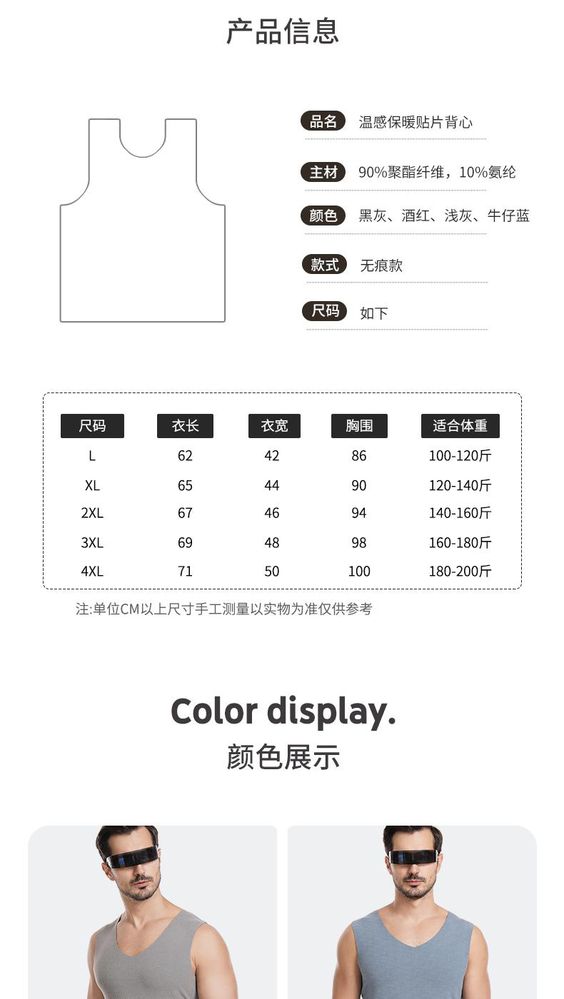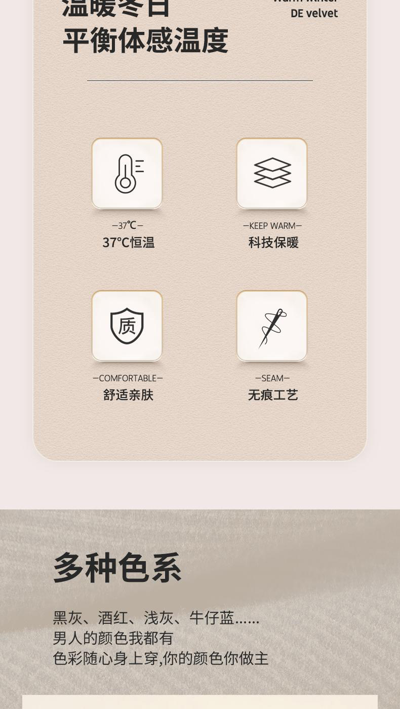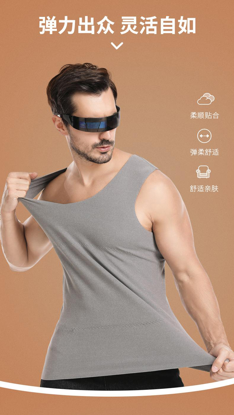 半身缘男装 冬季双面细绒温感保暖无骨拼接内搭背心BX403