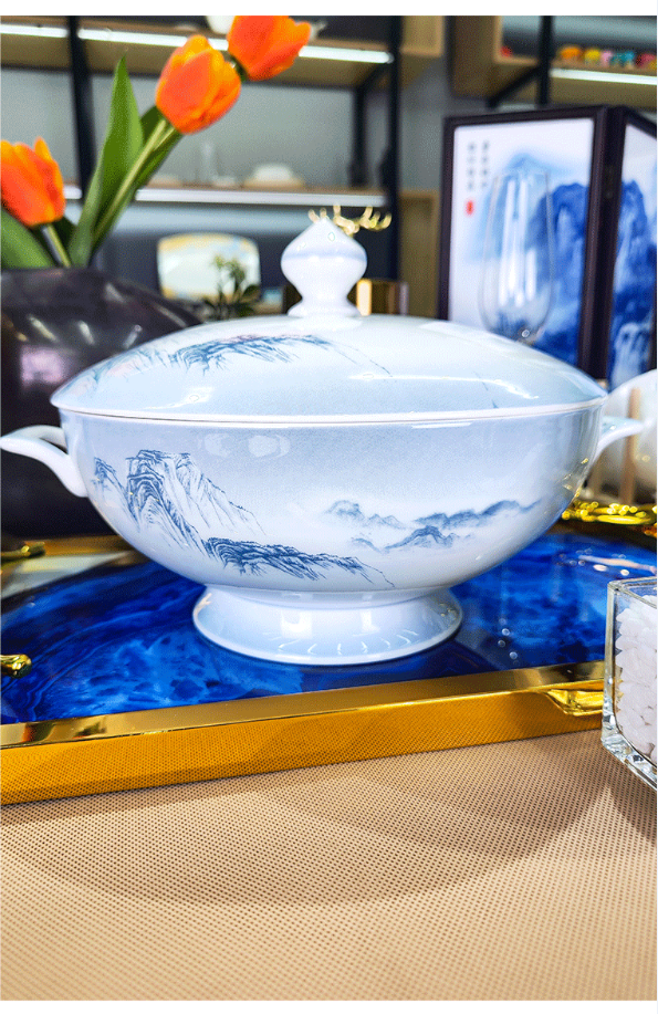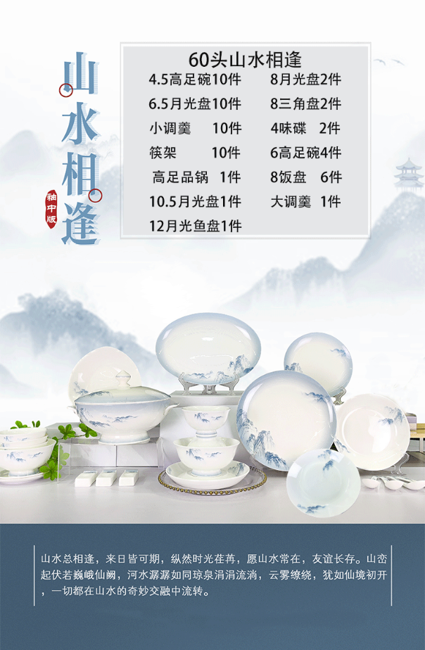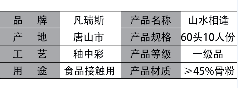 凡瑞斯山水相逢(釉中彩)60头10人用骨瓷餐具