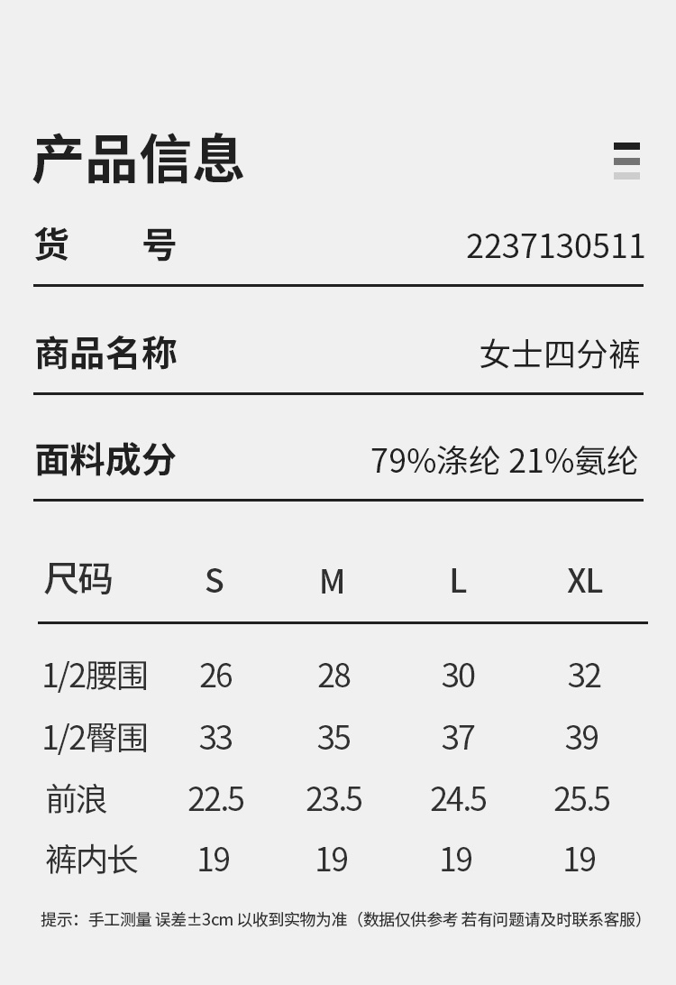 I'd爱帝女士运动短裤跑步瑜伽塑形高弹四分裤
