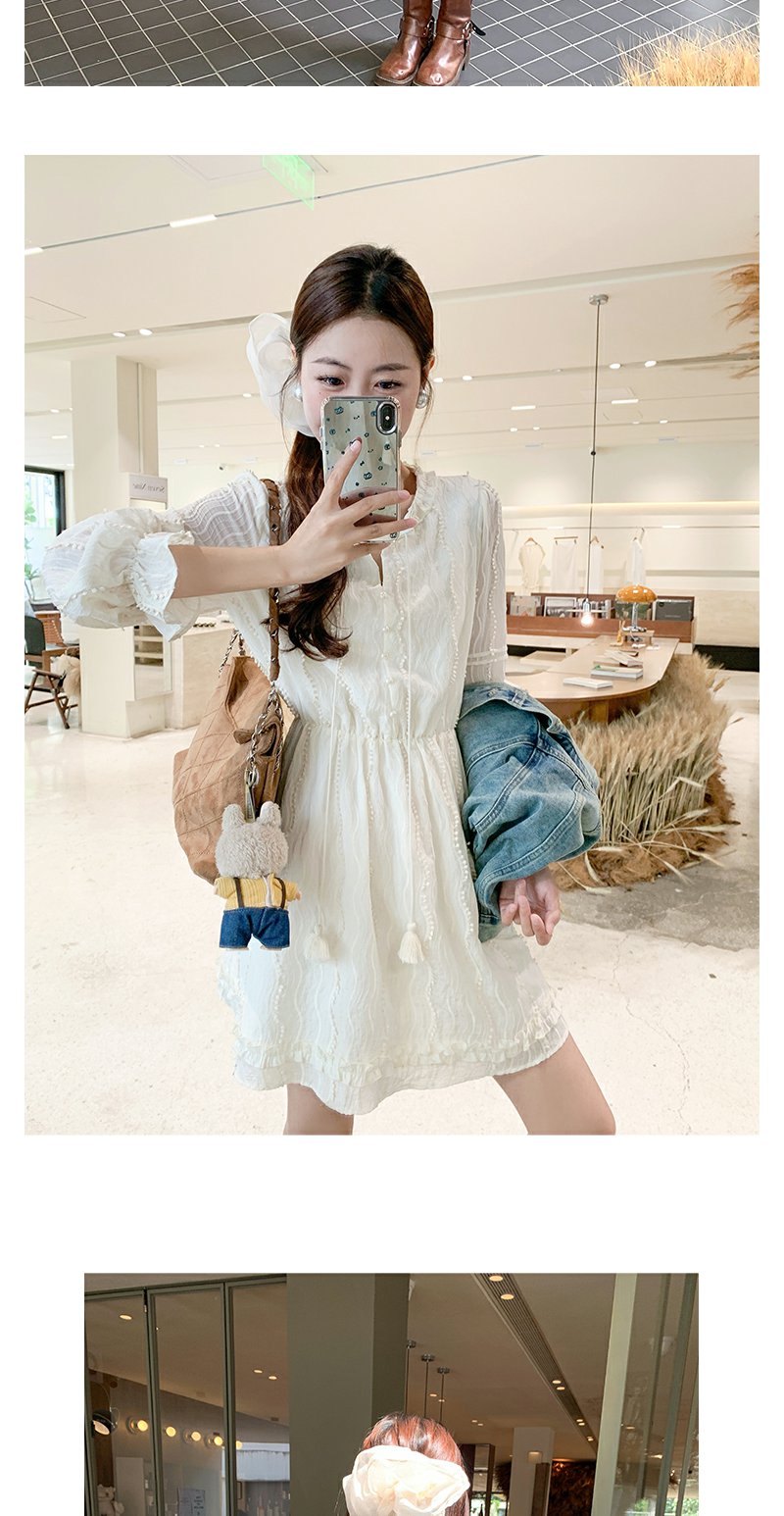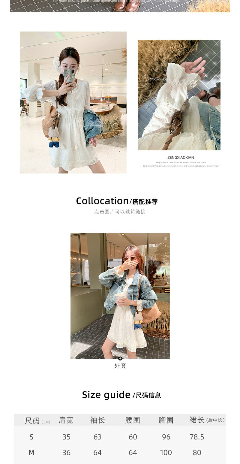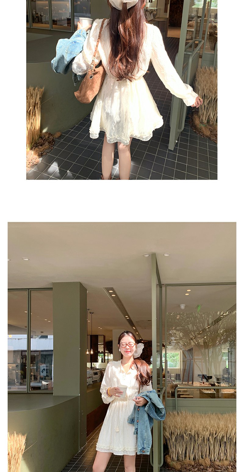 <曾小咸推荐>韩系初恋温柔风白色长袖连衣裙