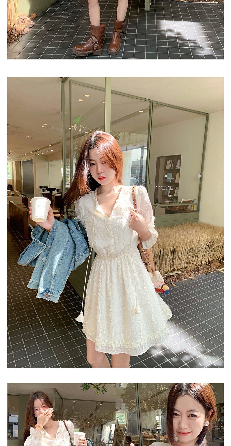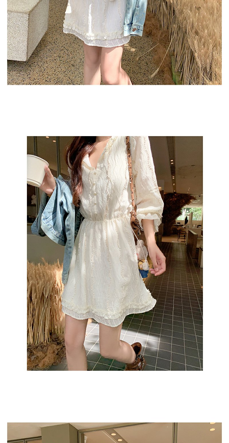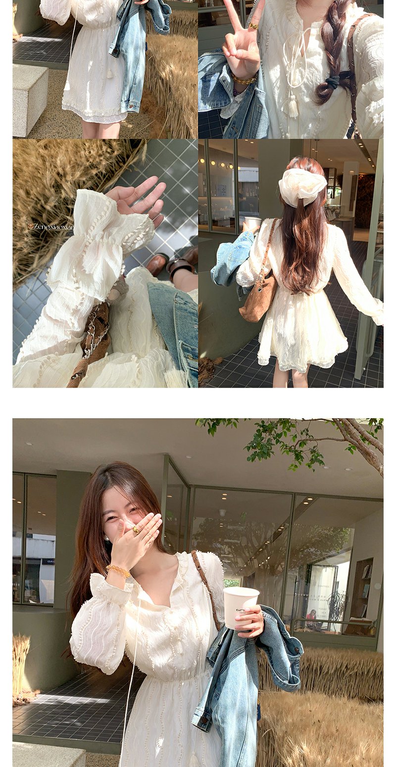<曾小咸推荐>韩系初恋温柔风白色长袖连衣裙