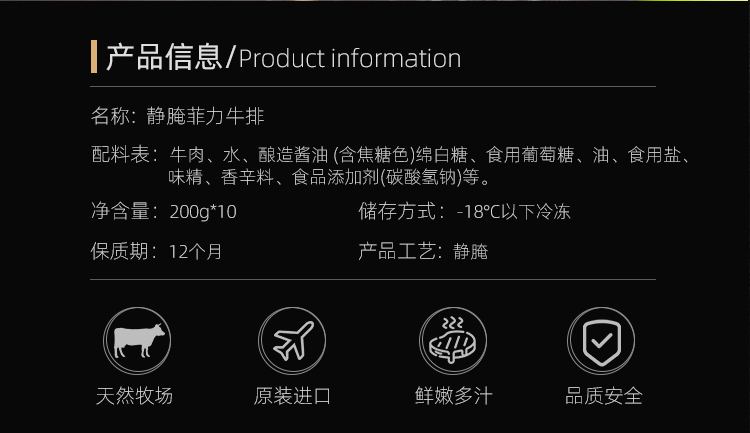 春禾秋牧 静腌菲力牛排 200g*10