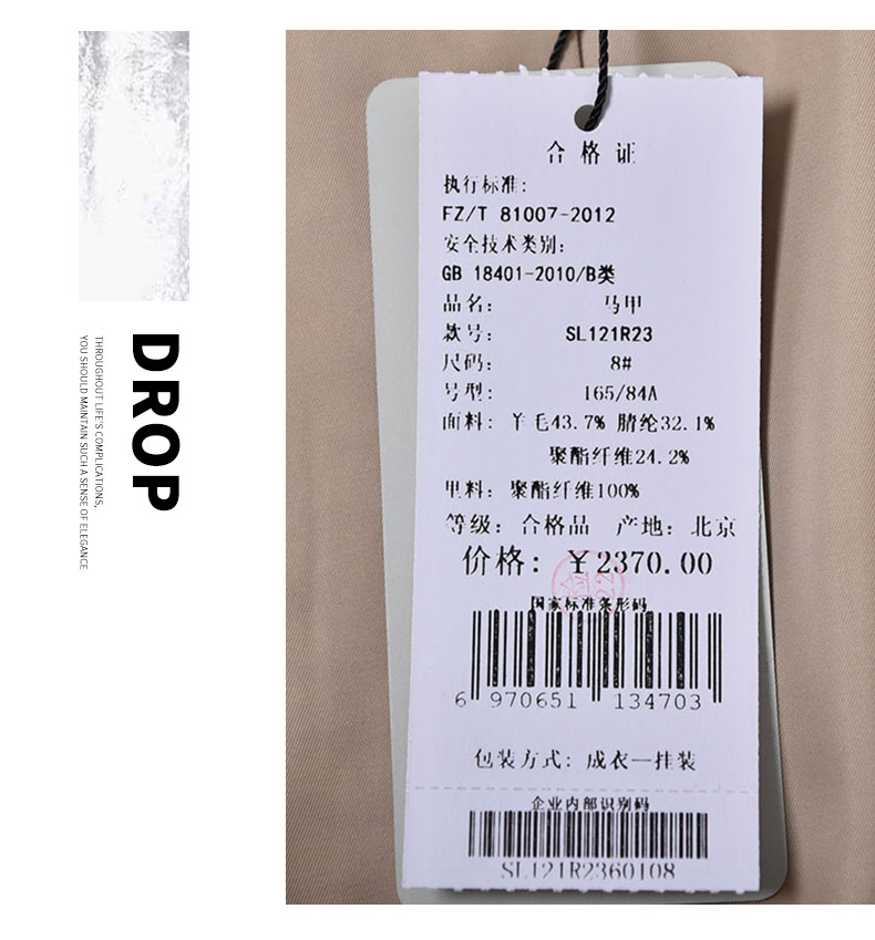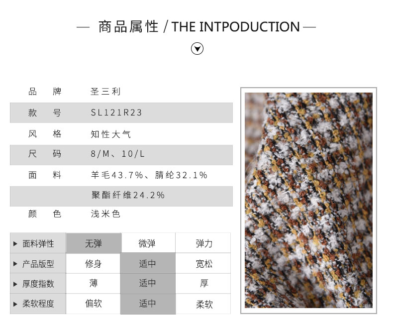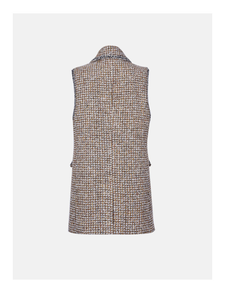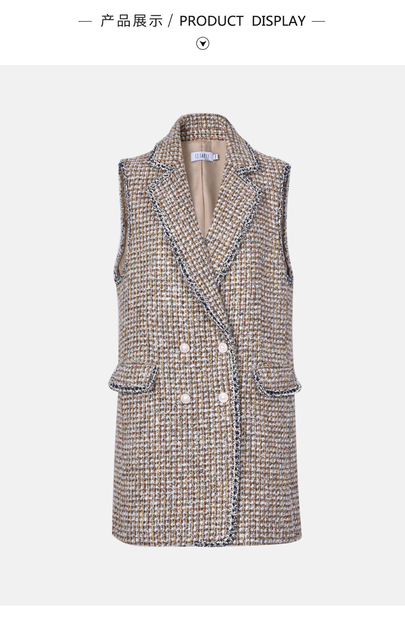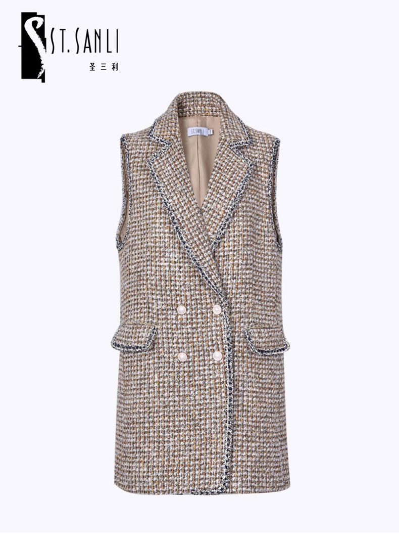 圣三利女装 气质优雅粗纺翻领珍珠扣无袖马甲SL121R23