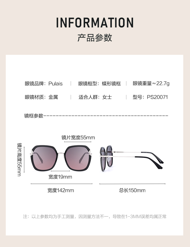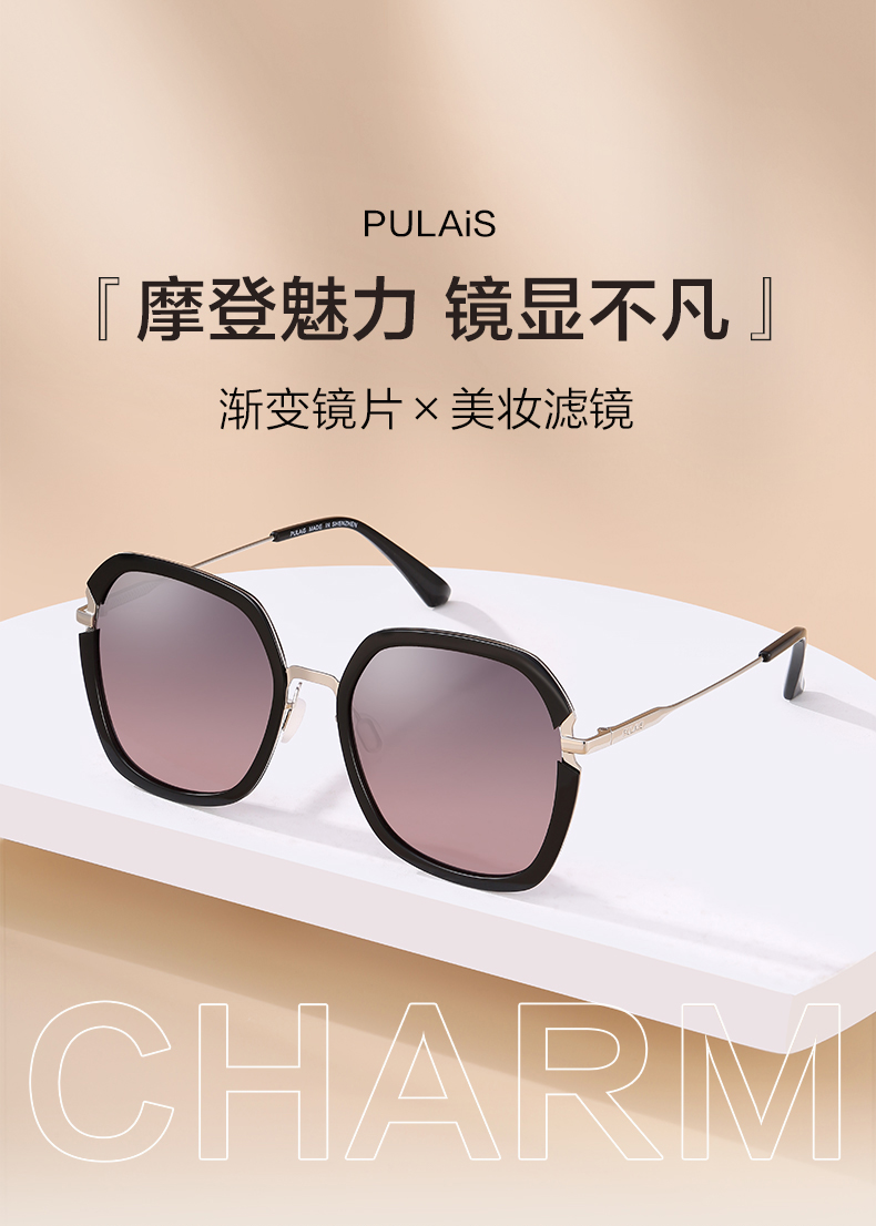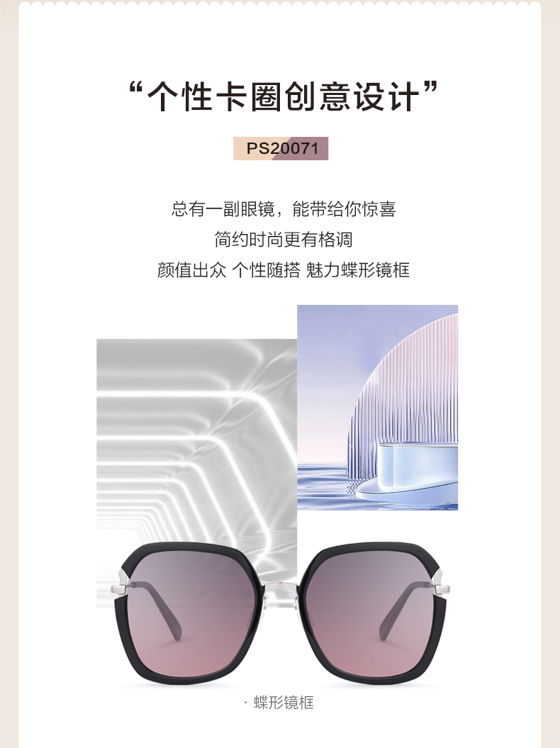 普莱斯PS20071 蝶形镜框 金属材质 渐变镜片+美妆滤镜 四色可选