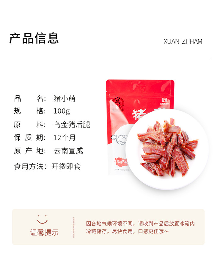 云南宣字猪小萌(即食原味火腿100g)