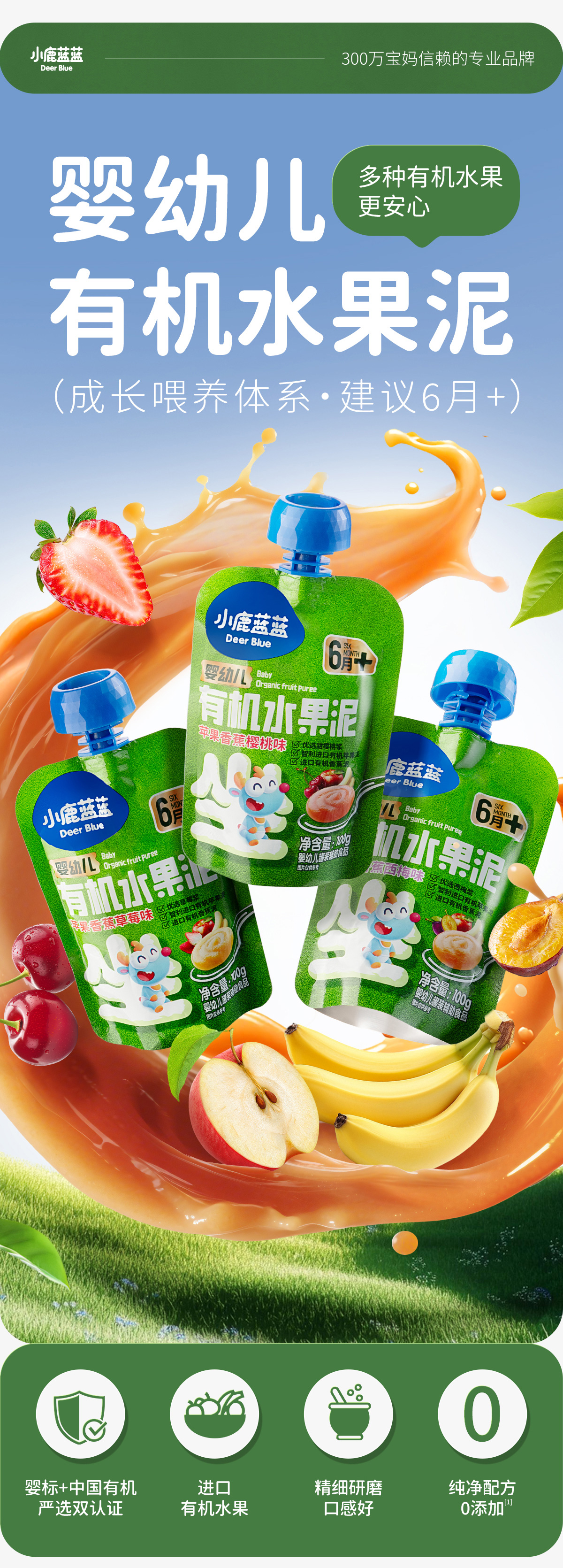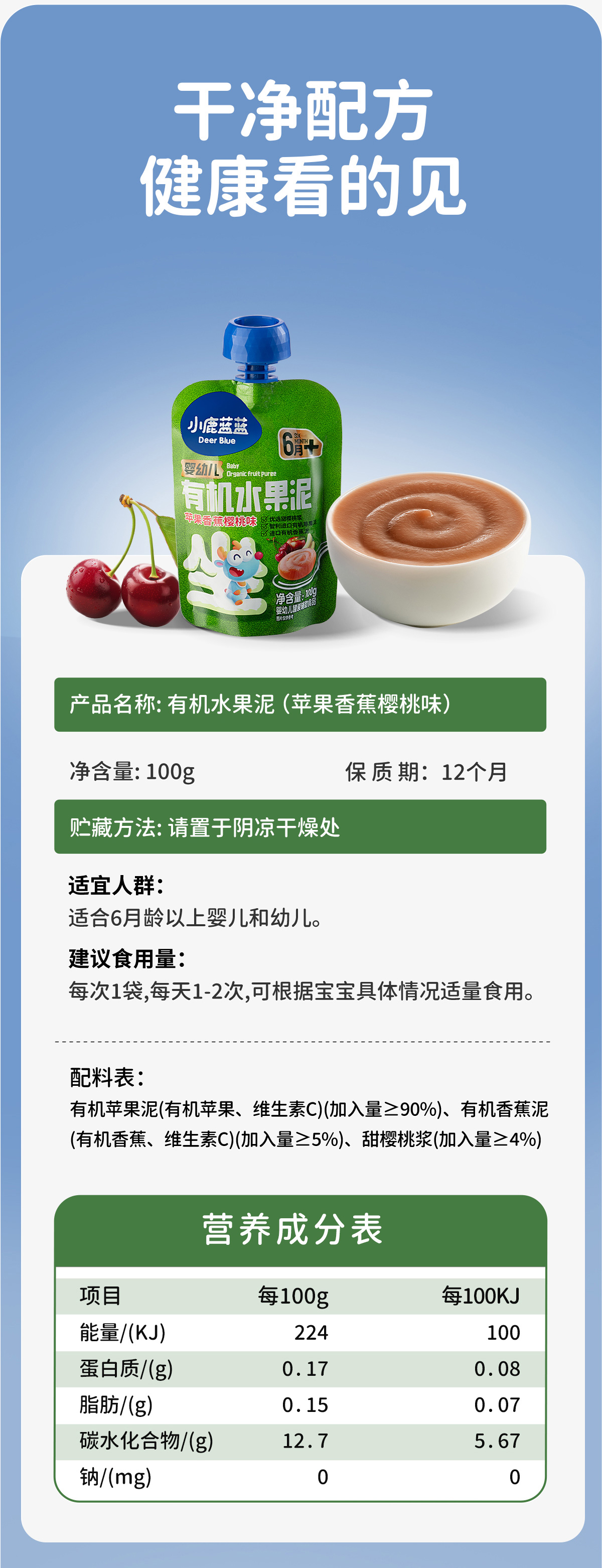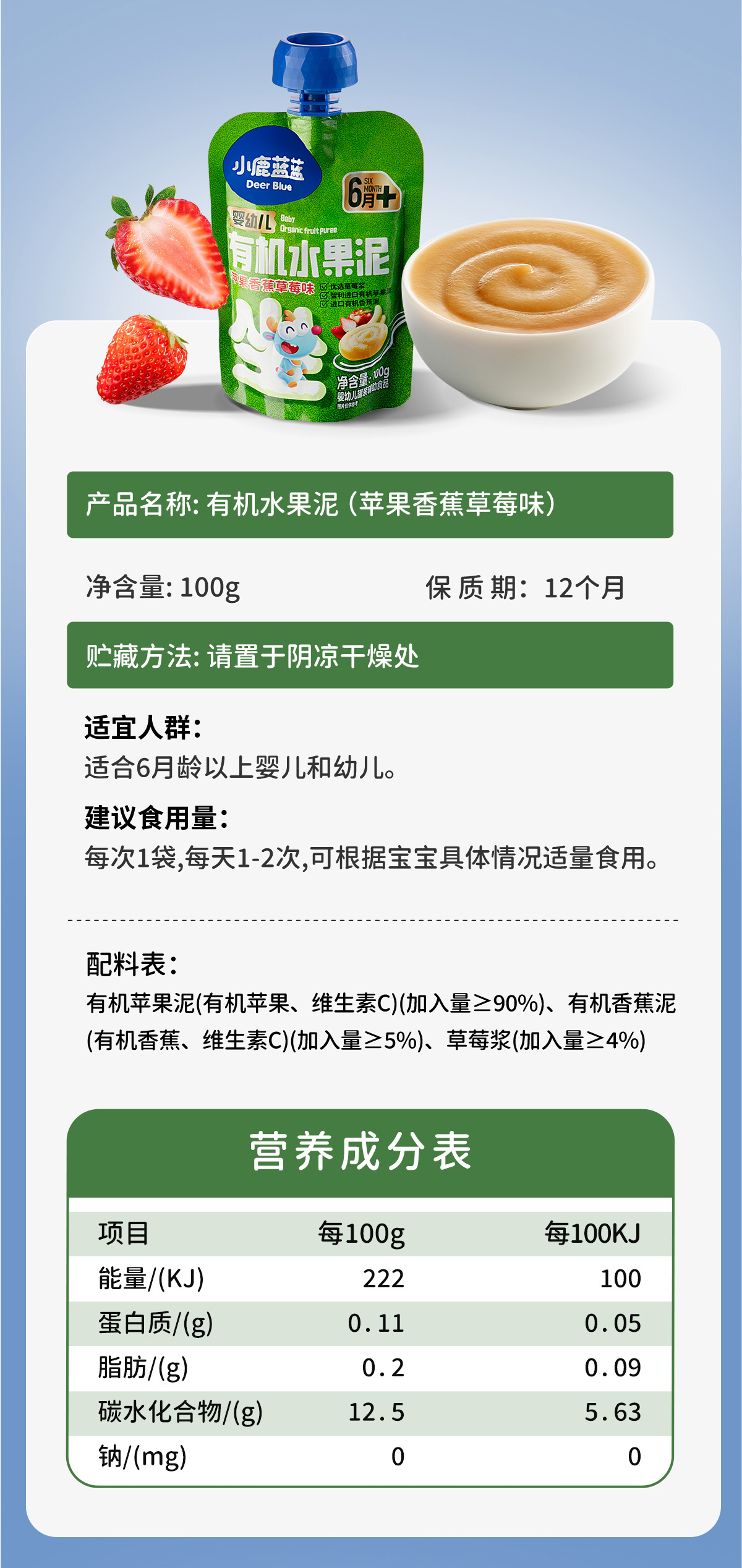 【婴幼儿有机水果泥】有机认证纯果泥不添加一滴水