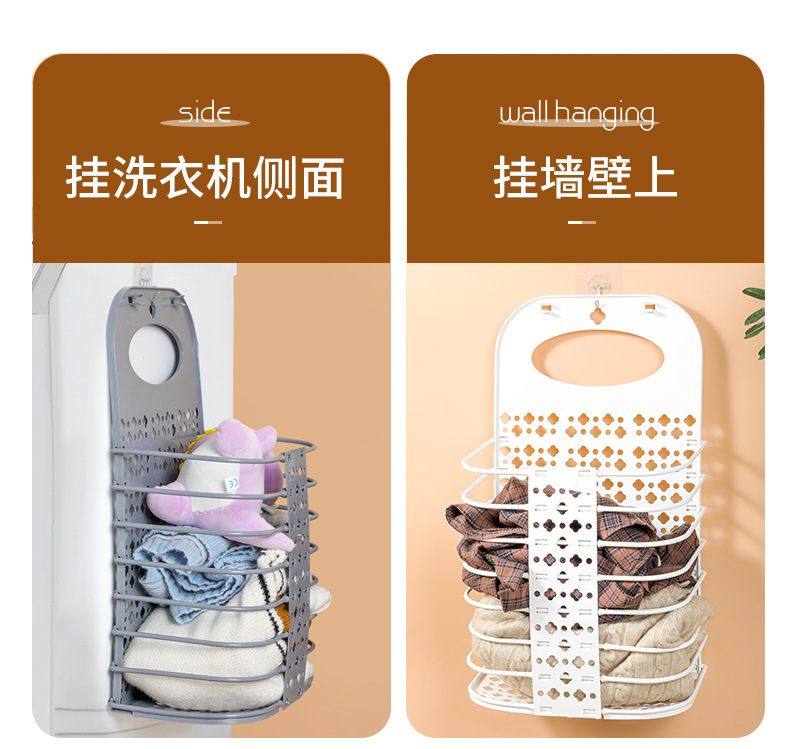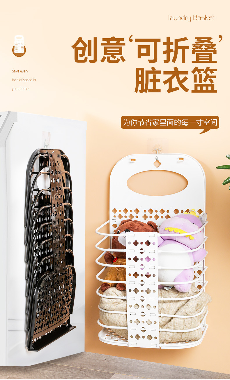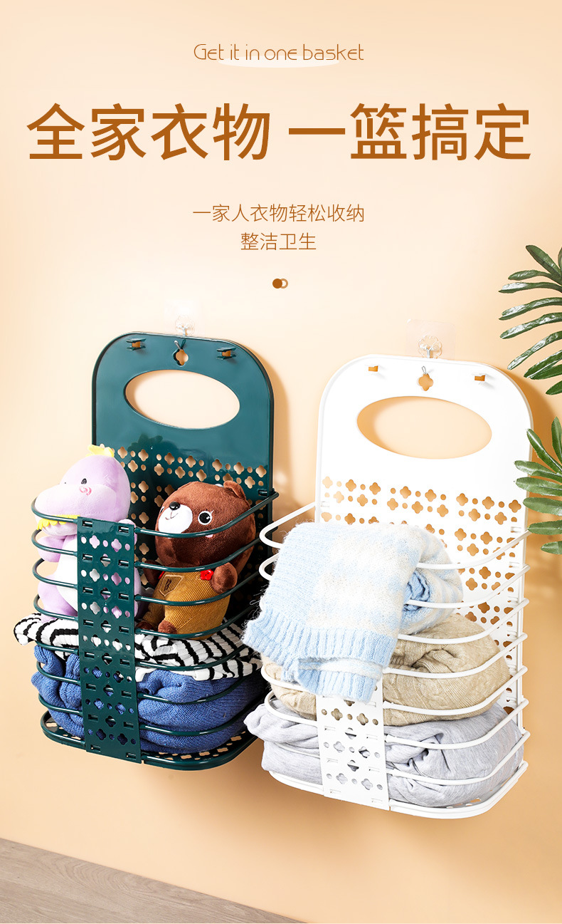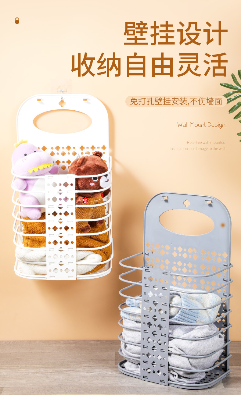 【创意可折叠脏衣篮!免打孔不伤墙面】PP材质脏衣篓玩具收纳篮 全家衣物一篮搞定整洁卫生 为你节省家里面的每一寸空间