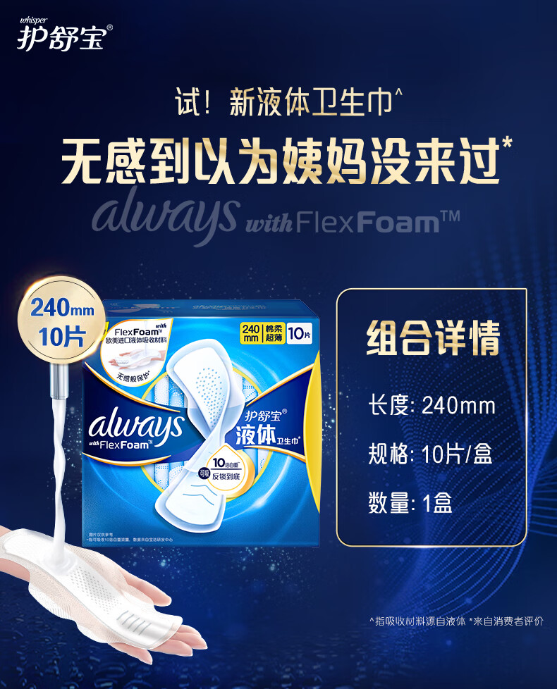 护舒宝液体卫生巾日用240mm*10片姨妈巾无感保护 1278490