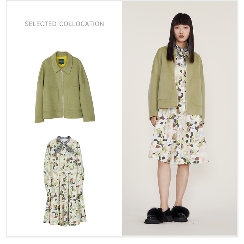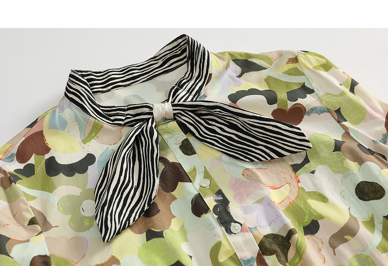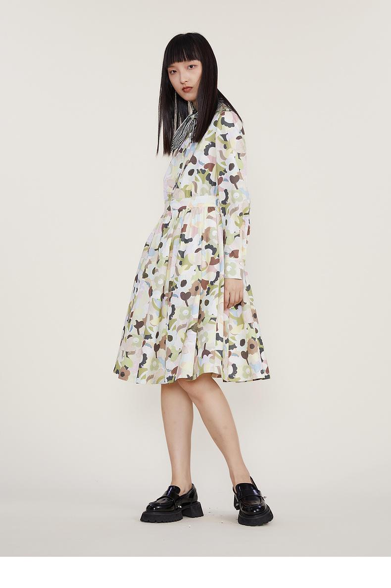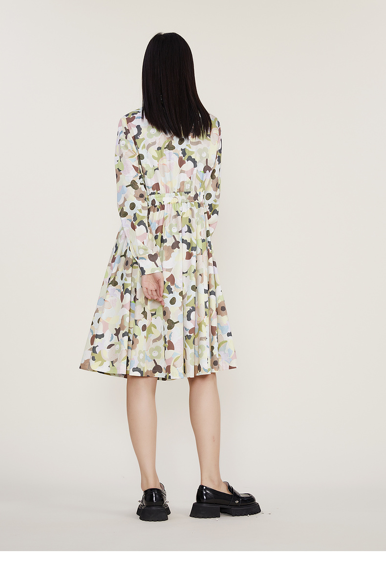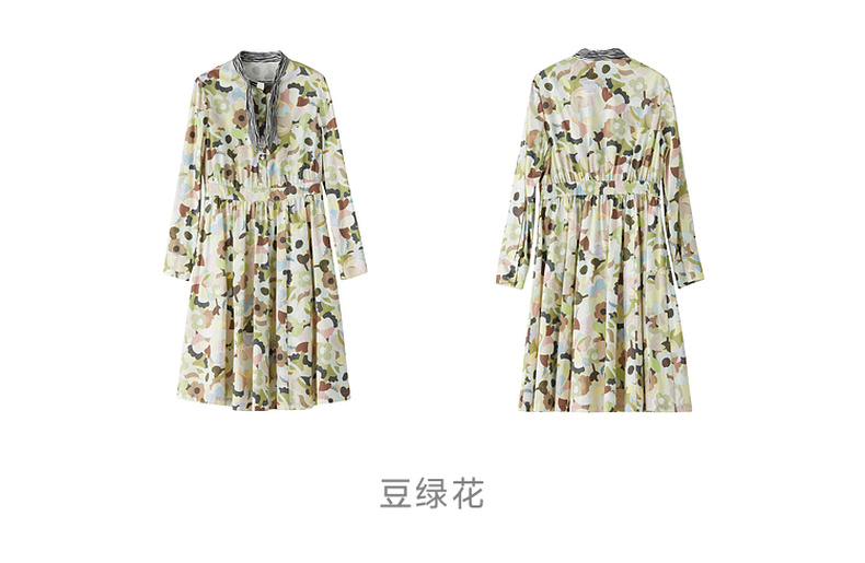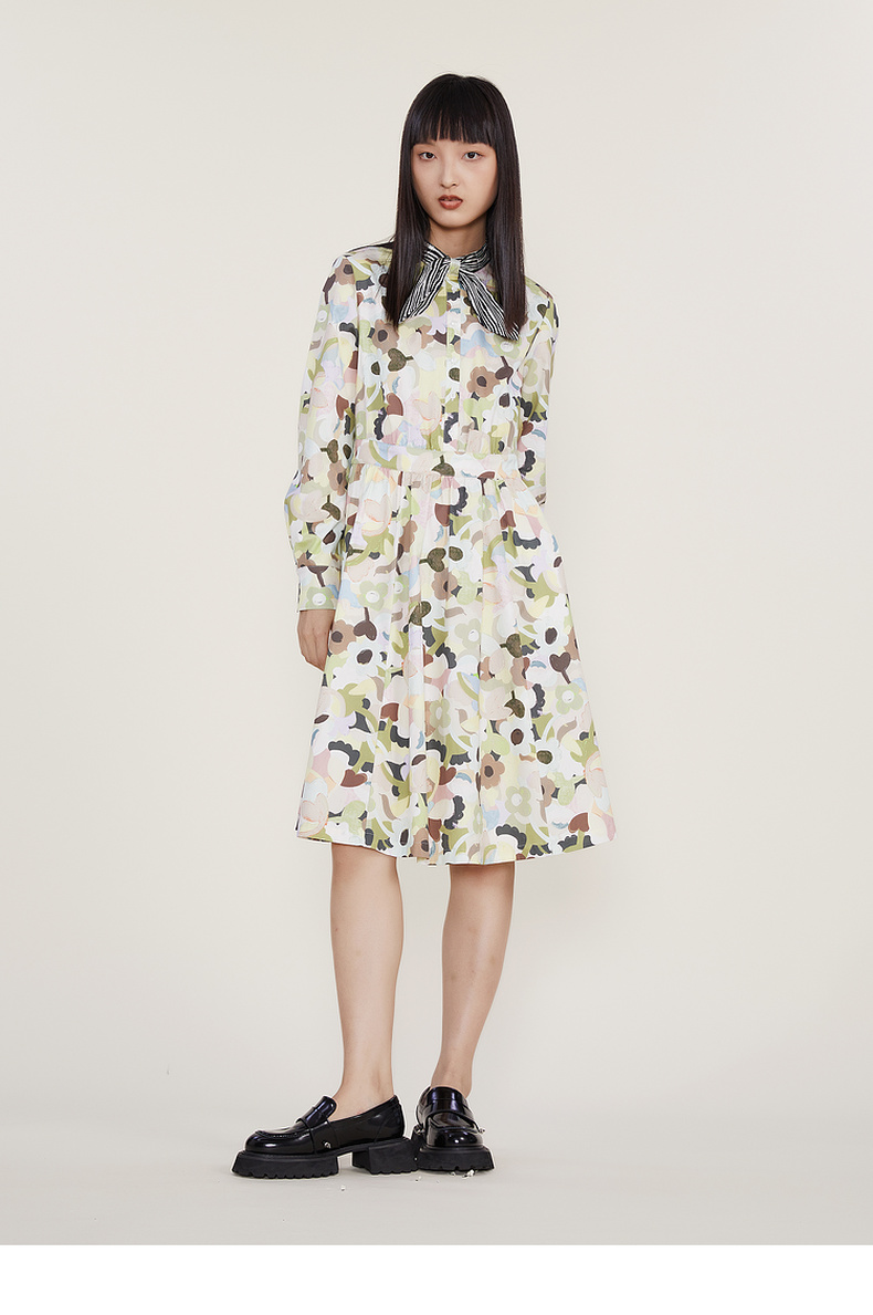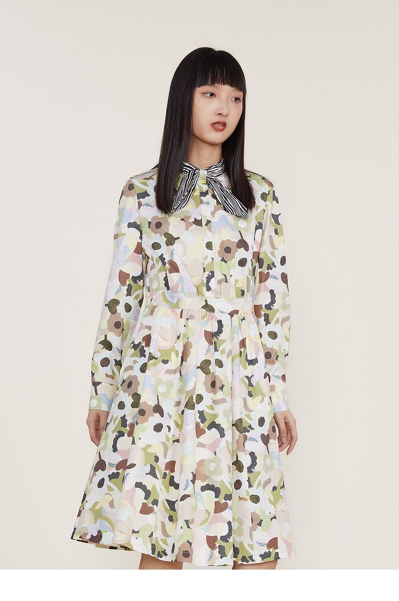谜底2022冬季新款复古X型印花连衣裙时尚感领结设计长裙224ML1696