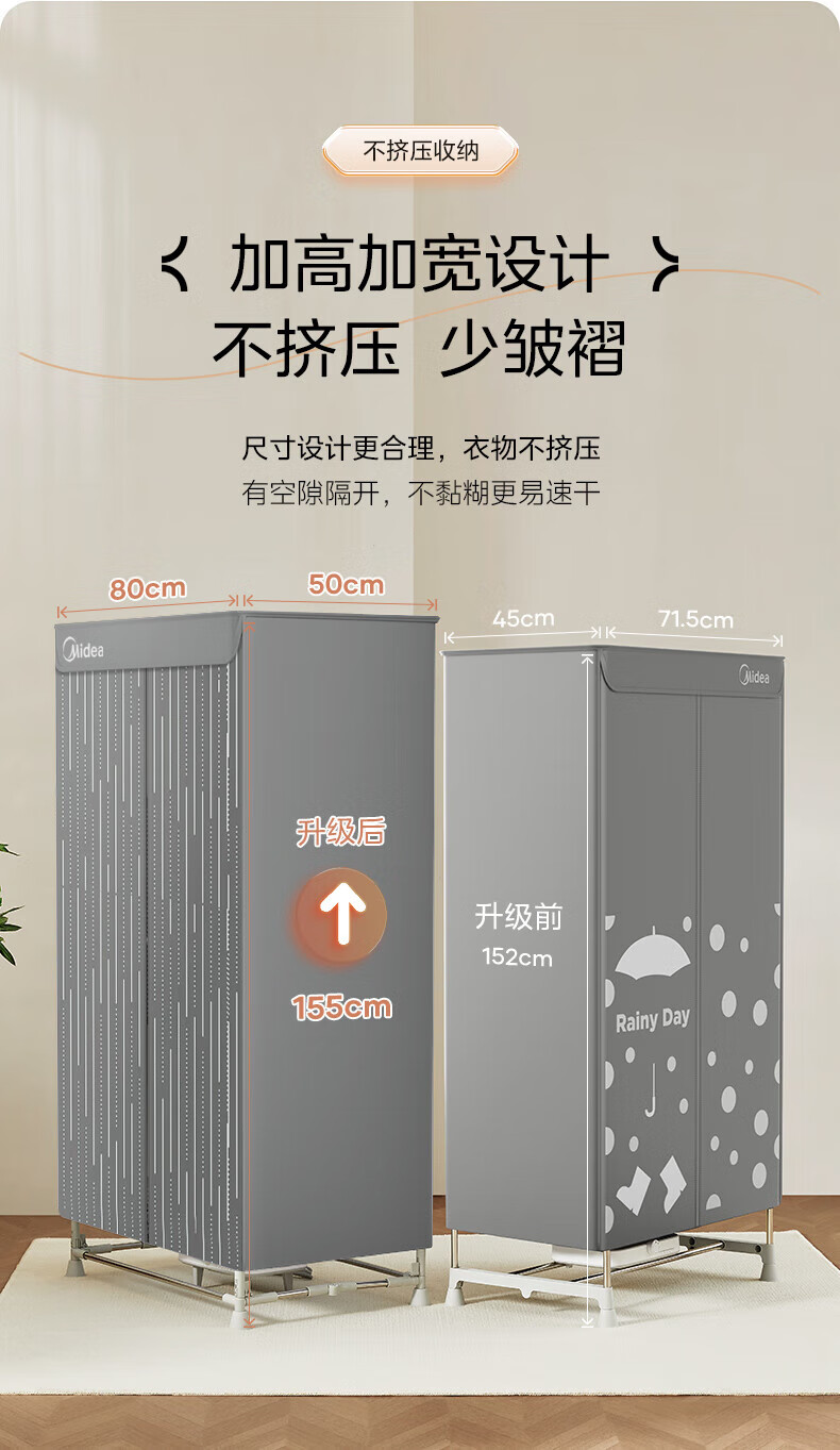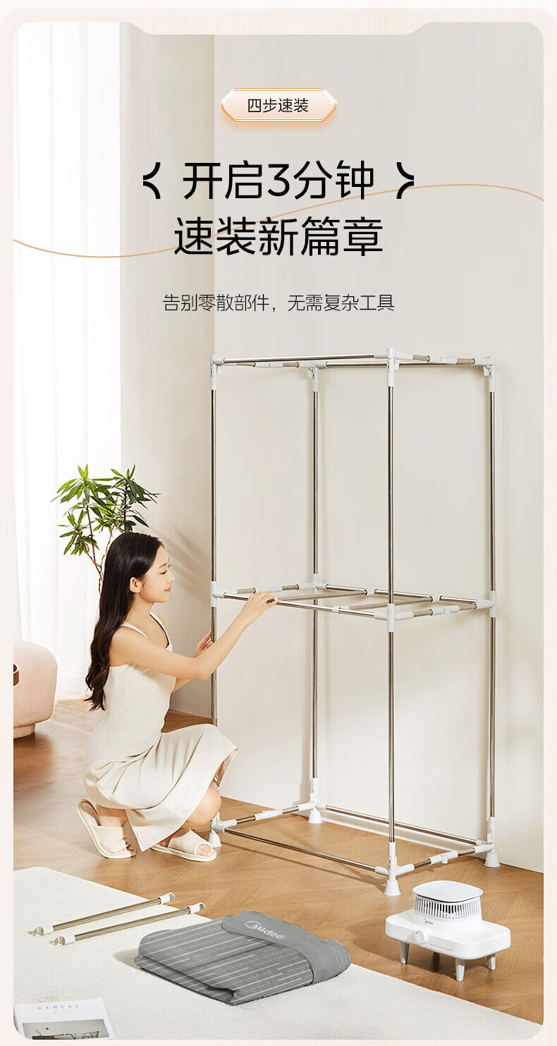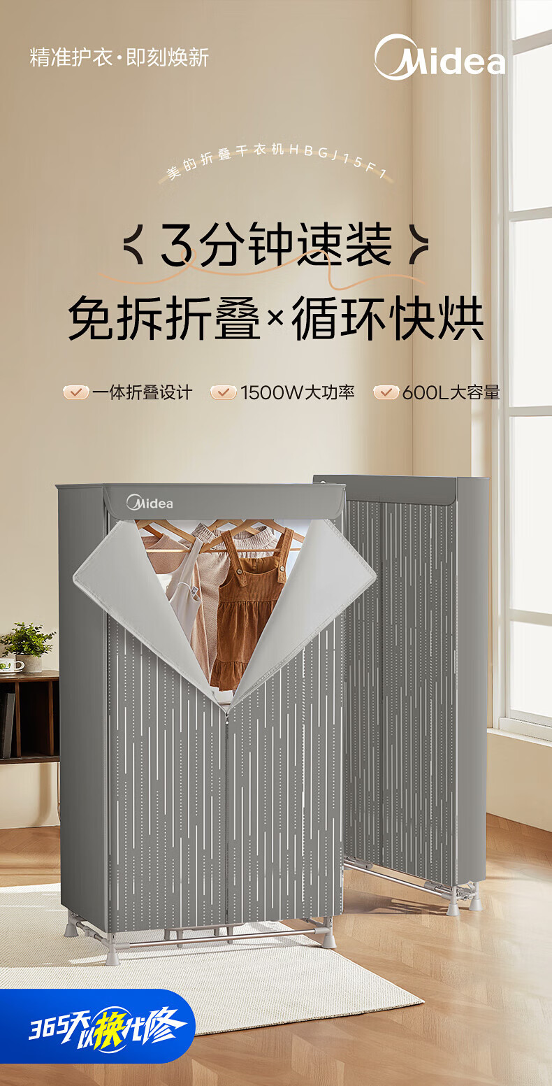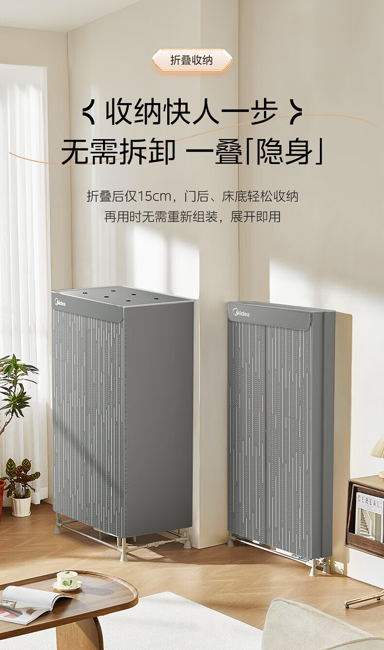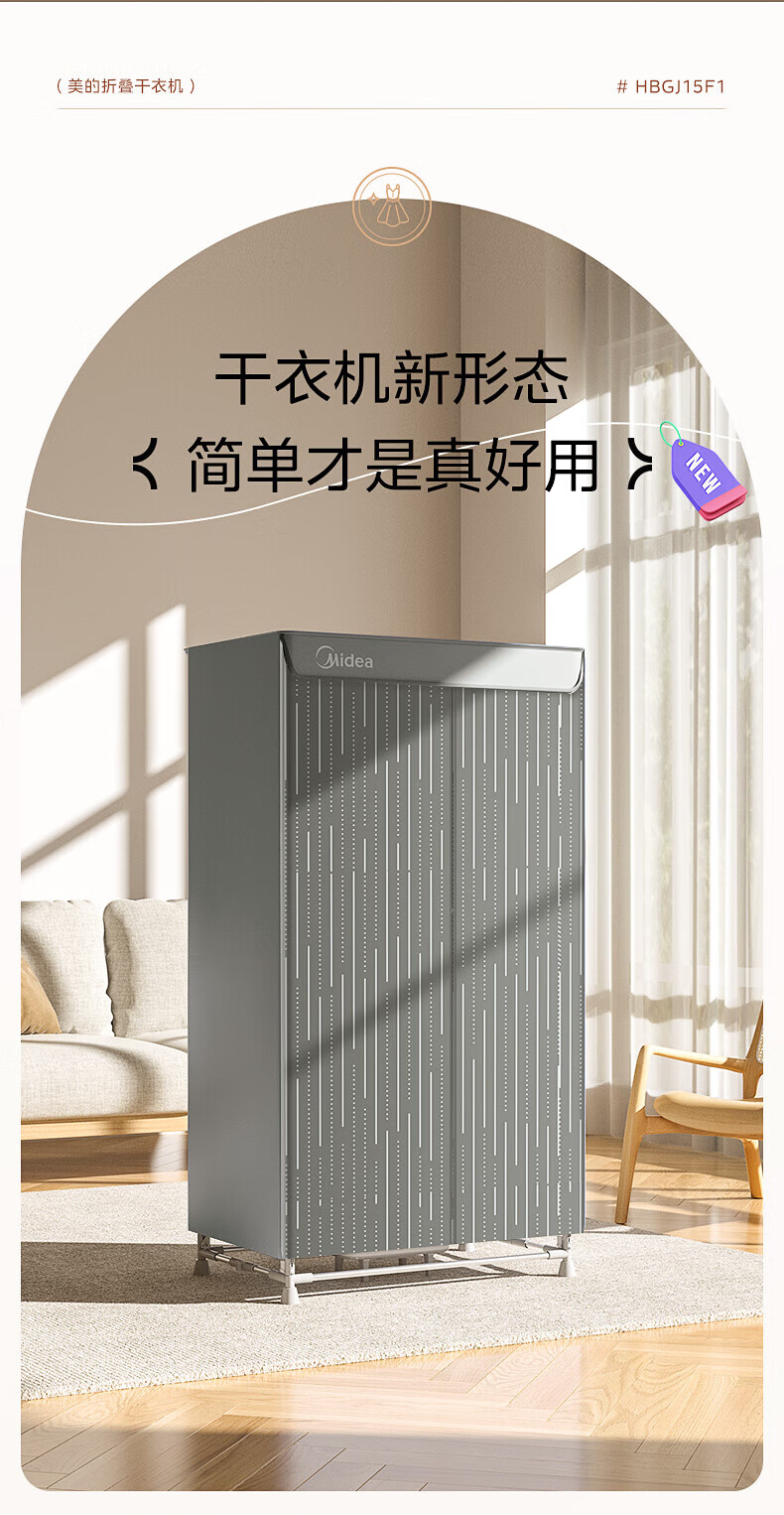 【小家电】美的Midea干衣机家用婴儿衣物暖风烘衣机风干机升级可折叠设计内衣消毒烘干衣机【600L大容量】HBGJ15F1 HF