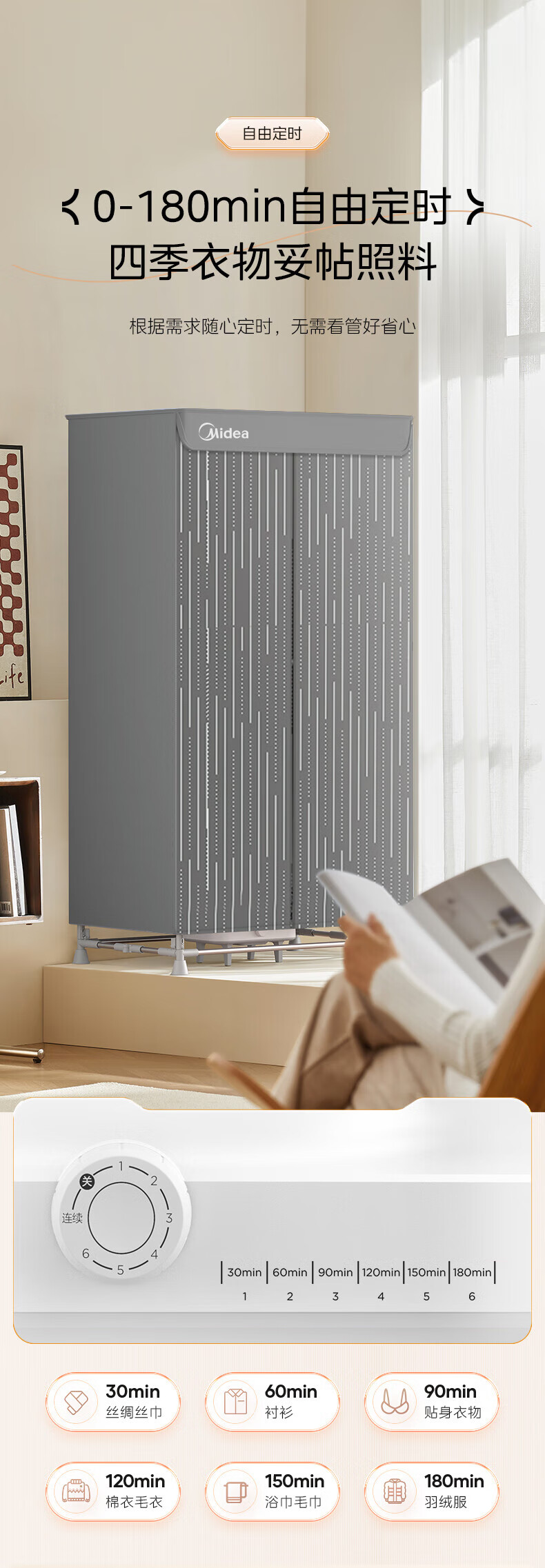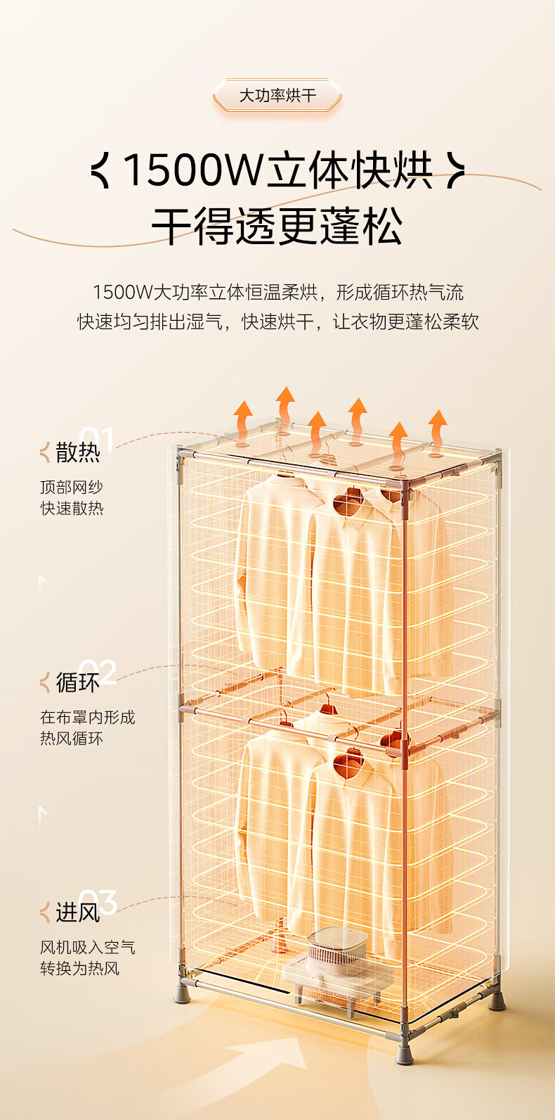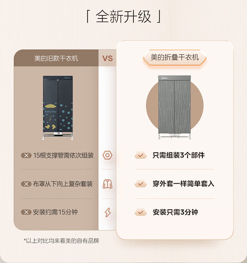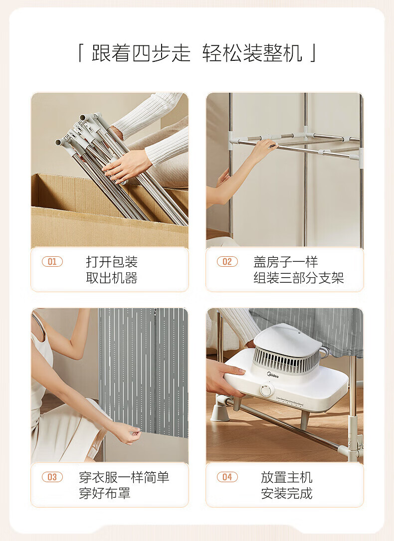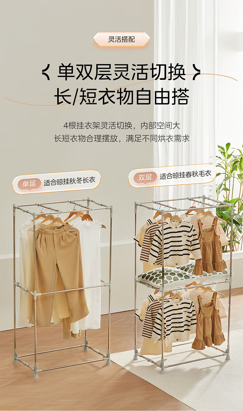 【小家电】美的Midea干衣机家用婴儿衣物暖风烘衣机风干机升级可折叠设计内衣消毒烘干衣机【600L大容量】HBGJ15F1 HF