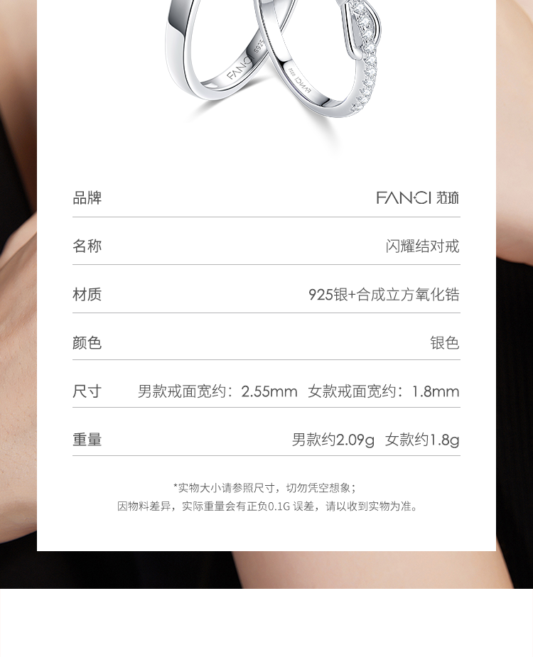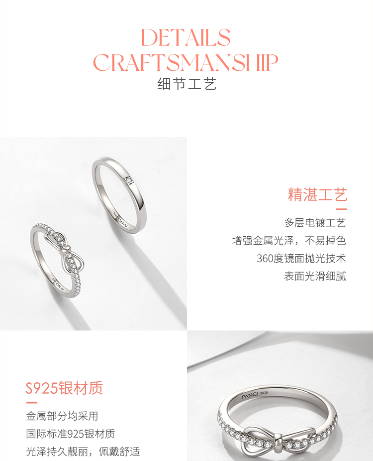 FANCI范琦 闪耀结对戒刻字戒指蝴蝶结情侣闭口戒小众设计礼物
