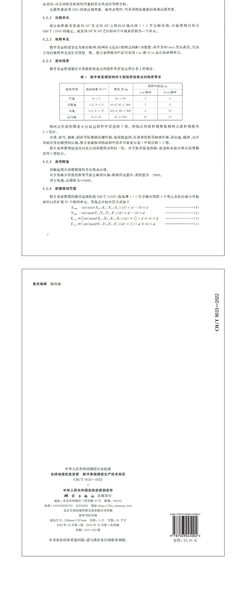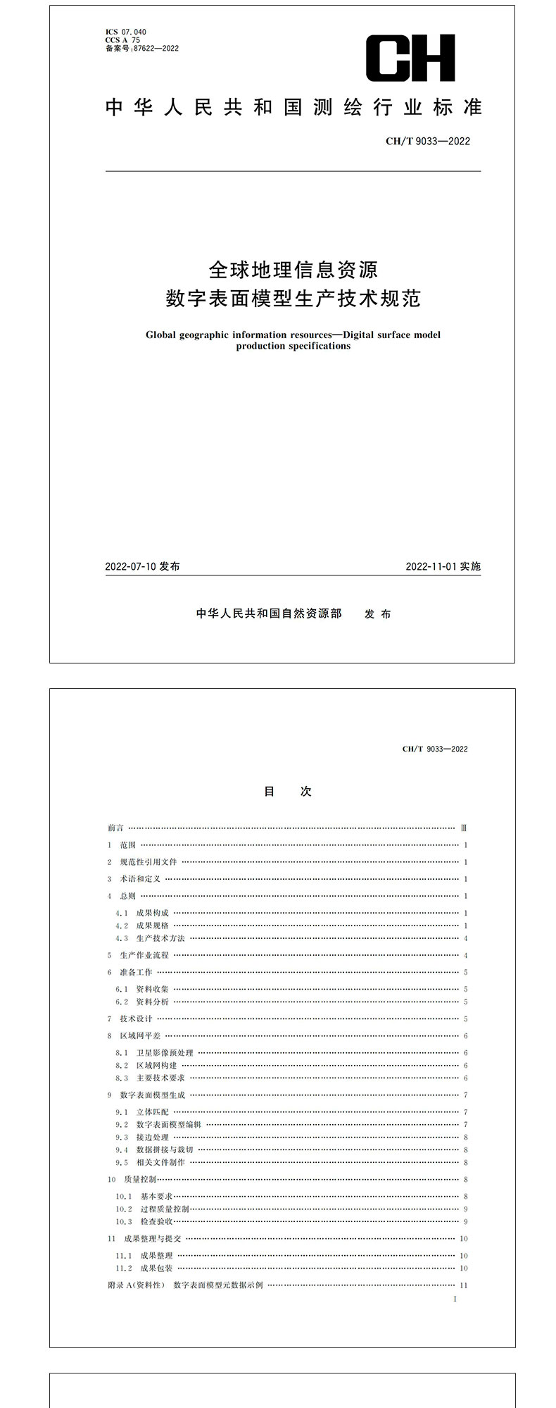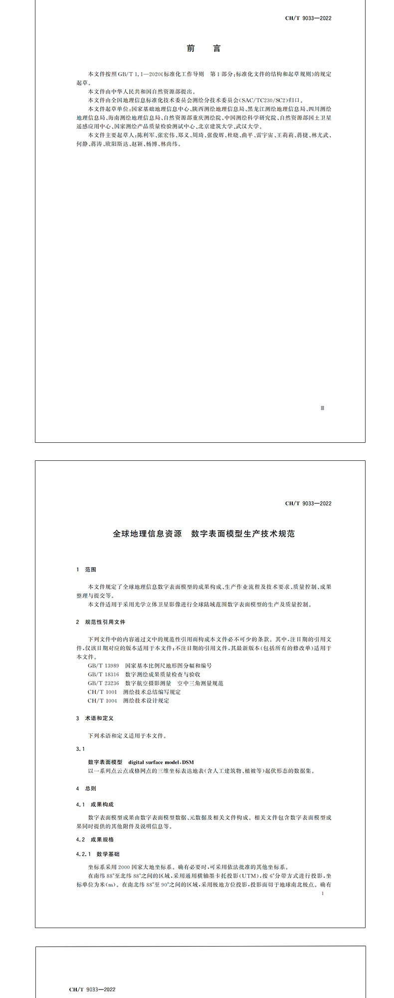 测绘行业标准 全球地理信息资源数字表面模型生产技术规范——CHT 9033—2022