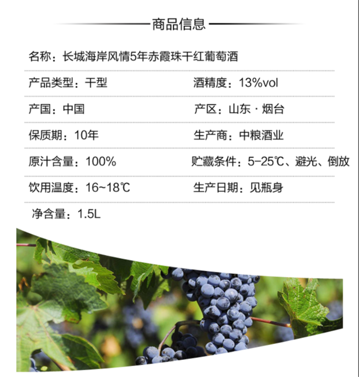 长城风情系列5年赤霞珠干红葡萄酒 整箱6瓶*750ml包邮