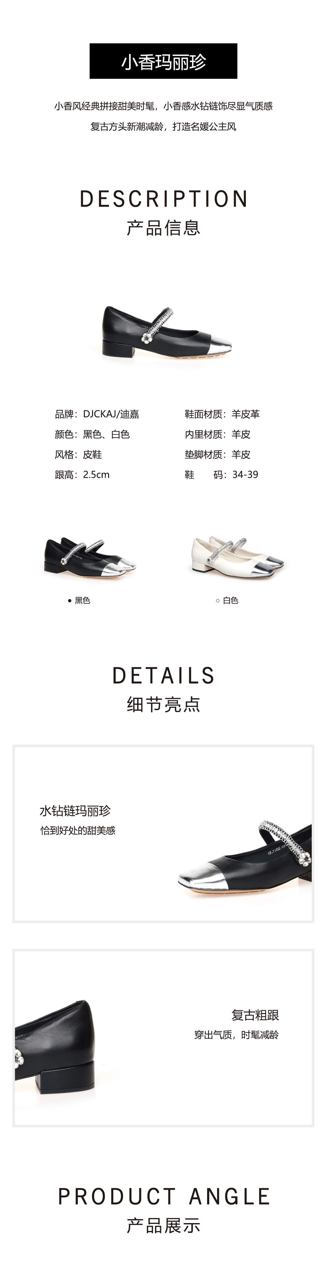 豪麟名鞋迪嘉女鞋玛丽珍鞋羊皮革DJHJA51WP003黑色