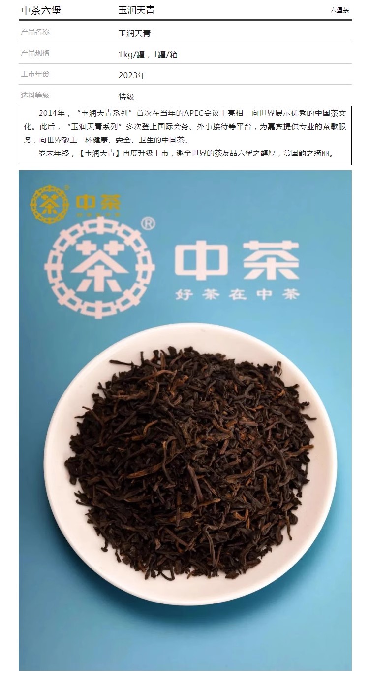 中粮-中茶2023年中茶广西梧州窖藏六堡茶黑茶玉润天青1KG罐装茶叶