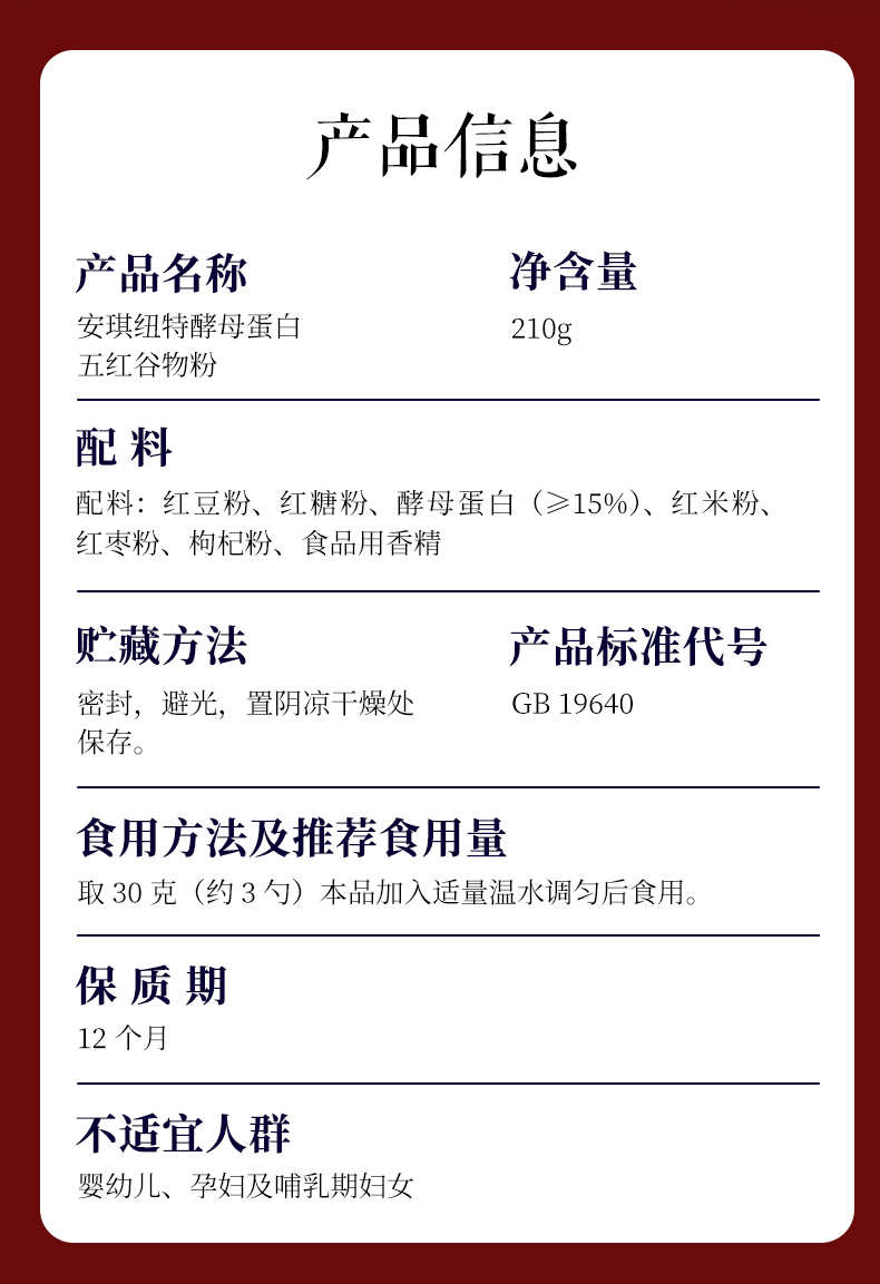酵母蛋白五红谷物粉210g