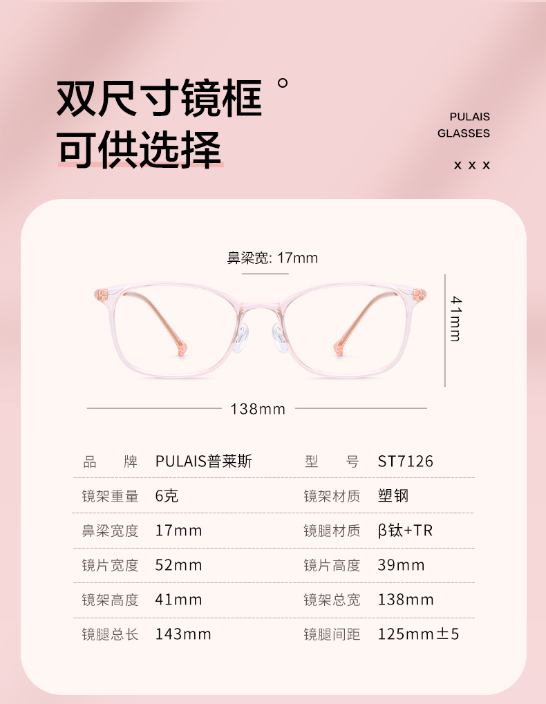 普莱斯光学镜架 ST7124/7126 宝藏潜桃一见倾心 纯钛 八色可选
