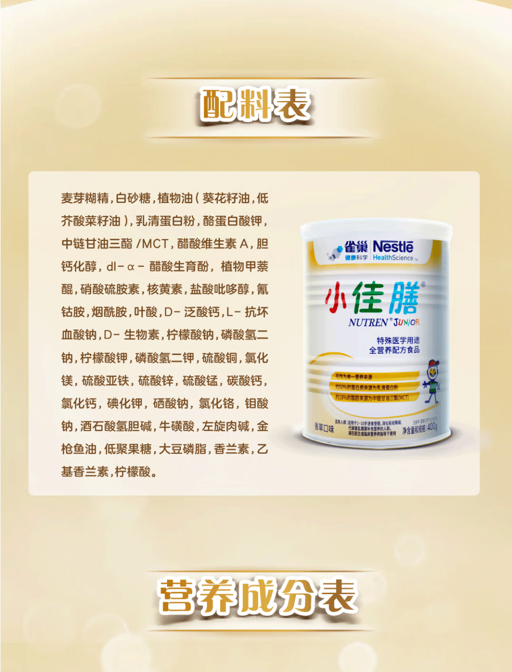 雀巢(Nestle)雀巢小佳膳 挑食偏幼儿和儿童全营养配方特配粉400g (1-10岁适用)