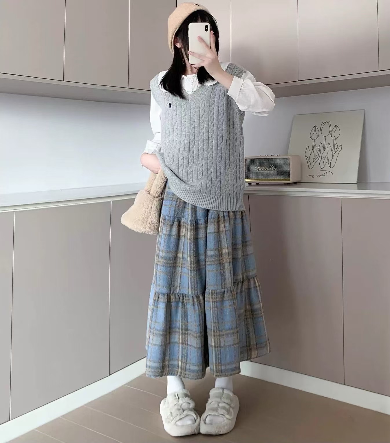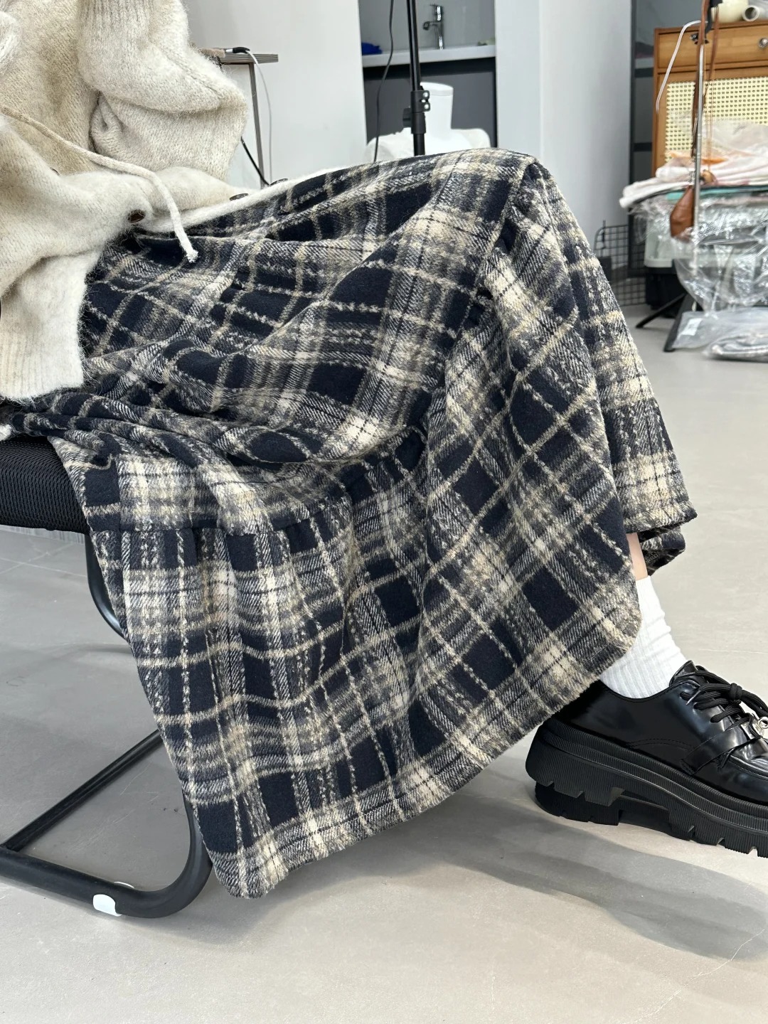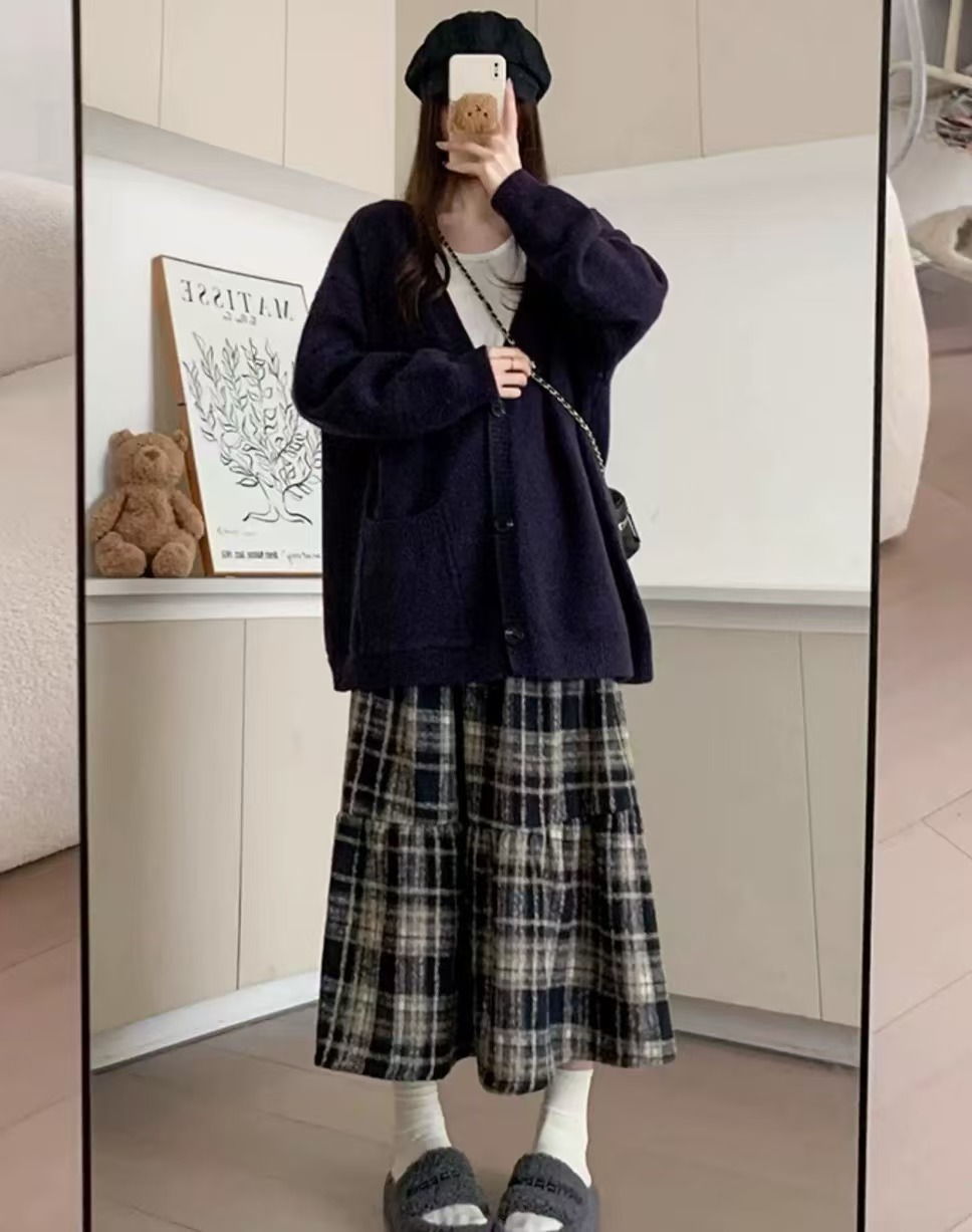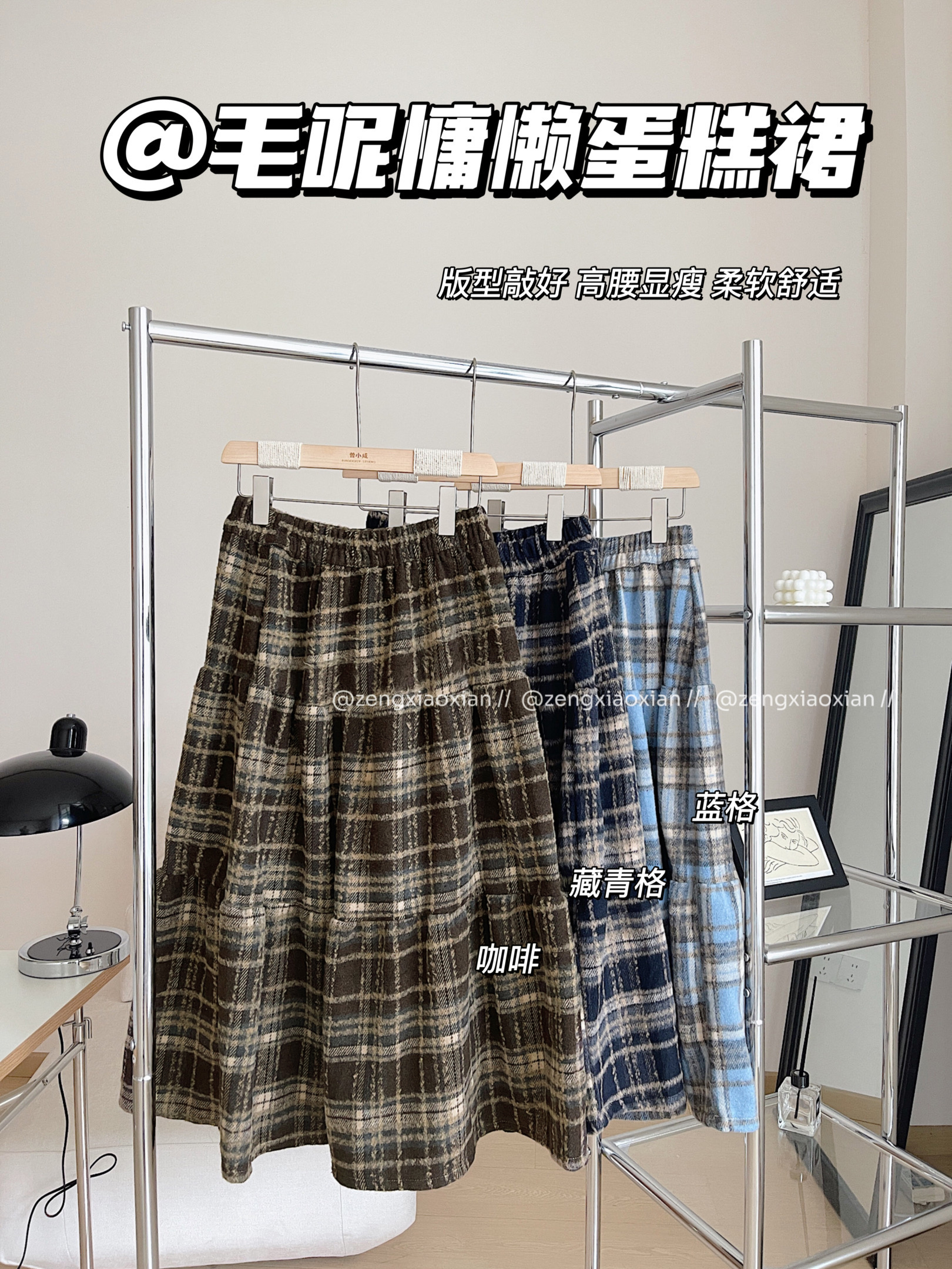 <曾小咸推荐>毛呢格纹蛋糕裙 日常价159/件 活动价89.99 !【预售款,预计3-15天发货】