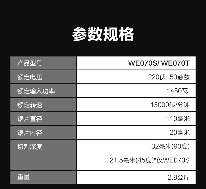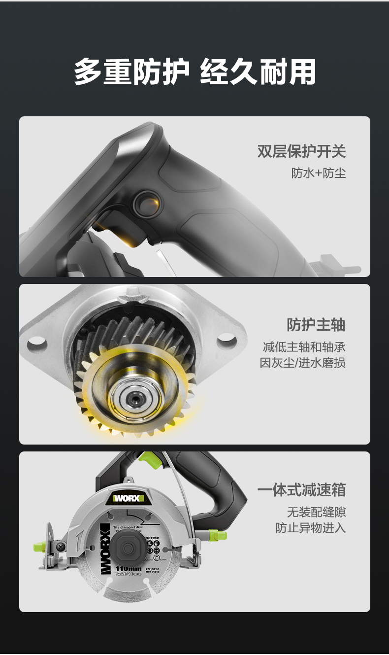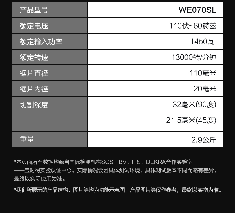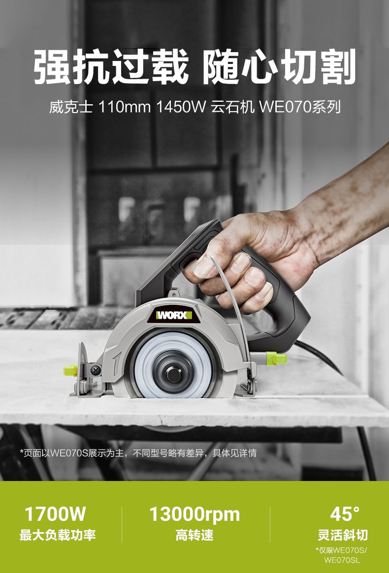 威克士 110mm 1450W 云石机 WE070S/WE070T