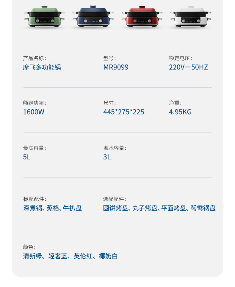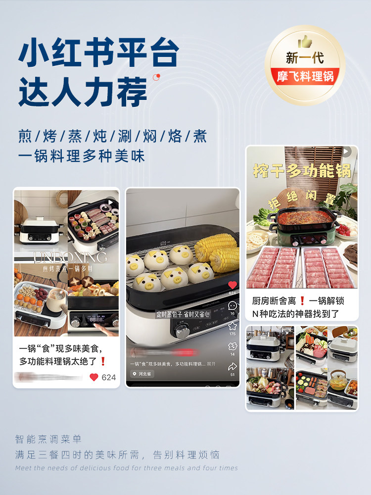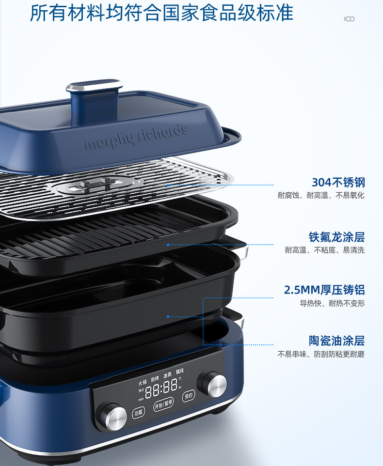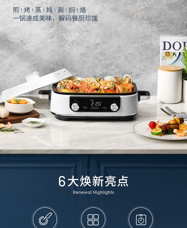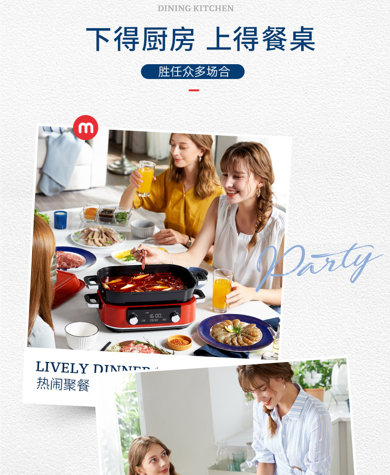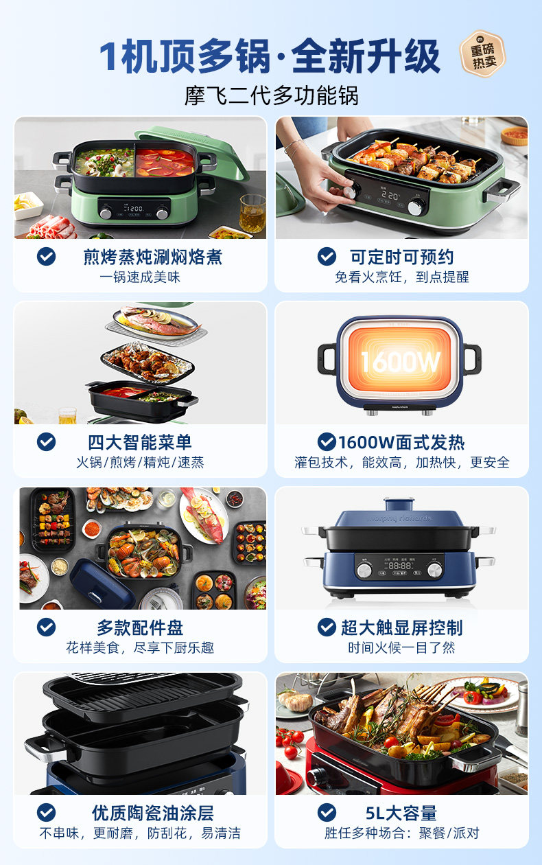 【摩飞多功能锅二代】摩飞二代多功能料理锅涮烤锅电蒸锅煮锅乔迁新婚礼物鸳鸯电热火锅