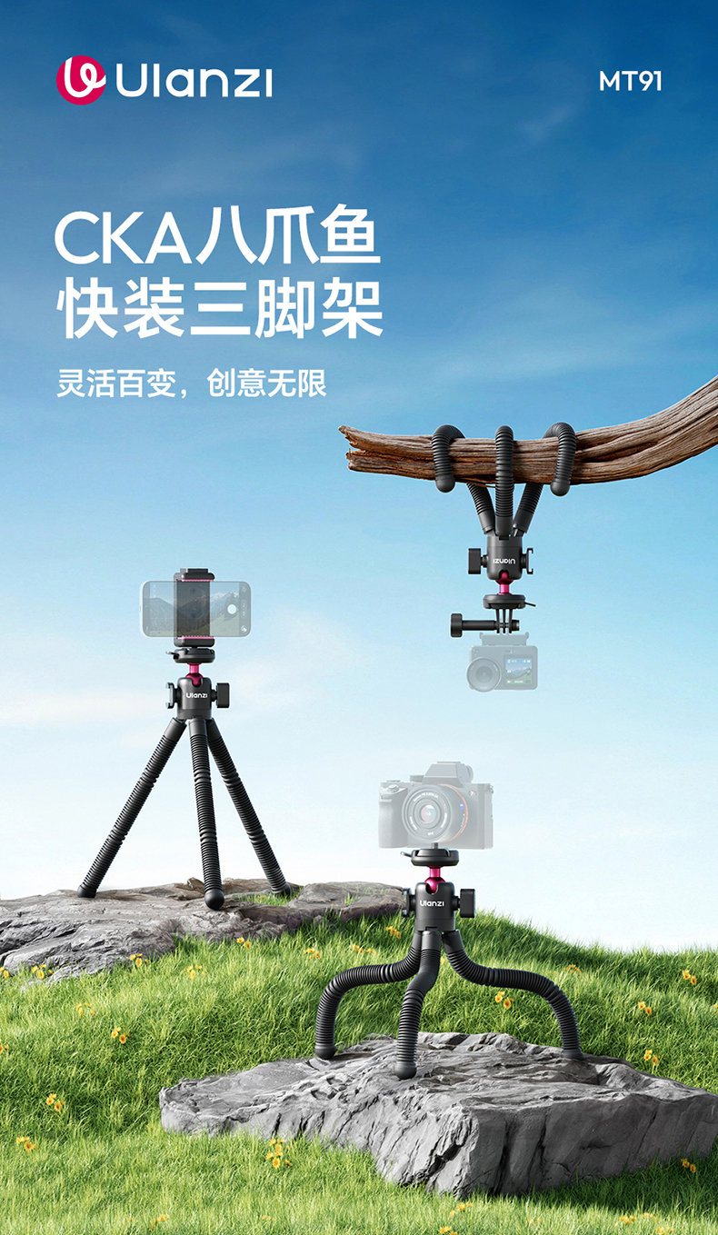Ulanzi优篮子 MT91 Cka快装八爪鱼三脚架拍摄支架微单相机通用自拍直播拍照百变懒人支架