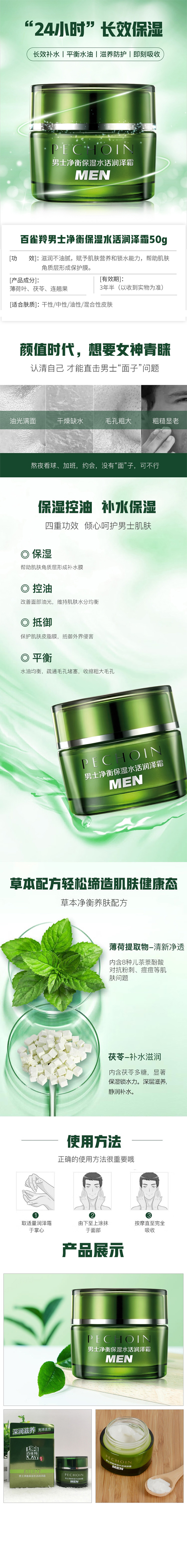 百雀羚(PECHOIN) 面霜()男士净衡保湿水活润泽霜,50g