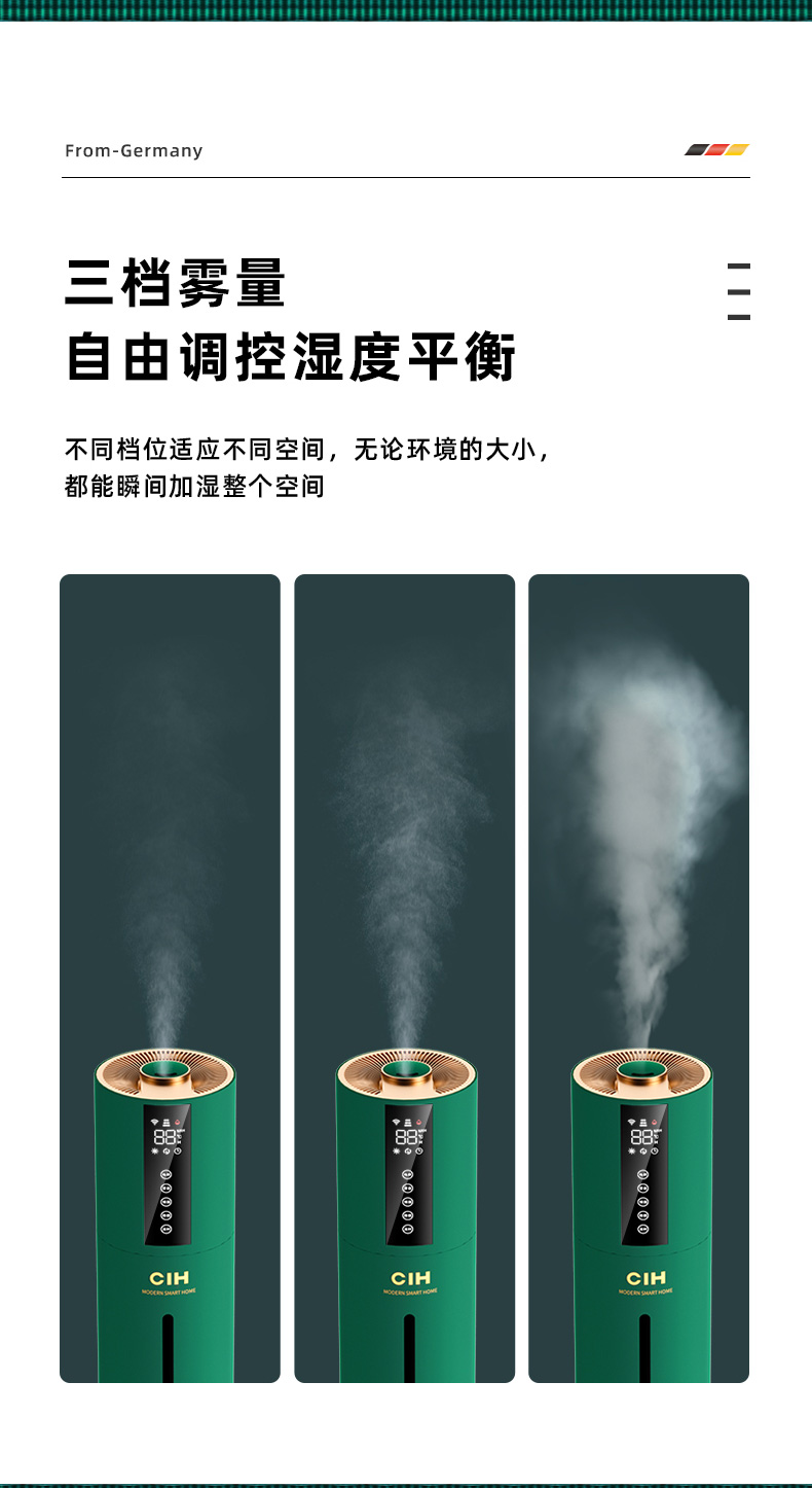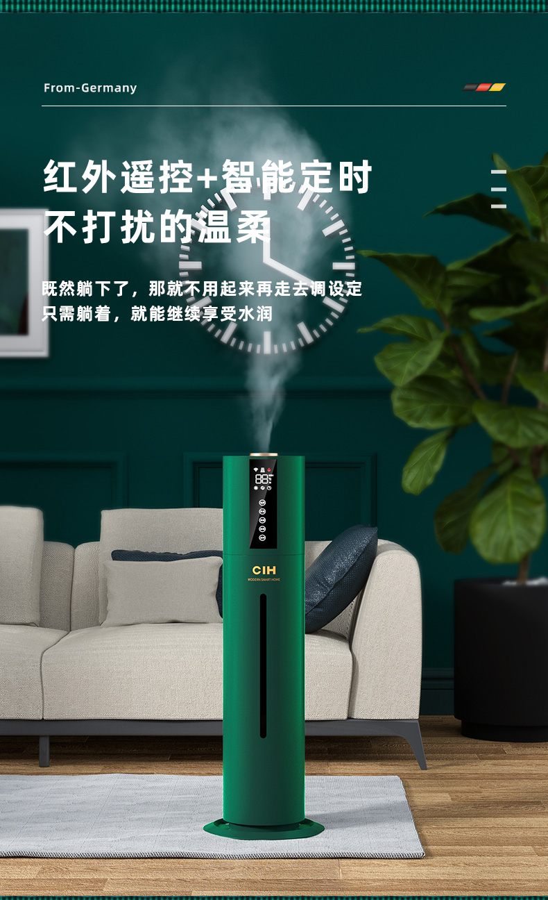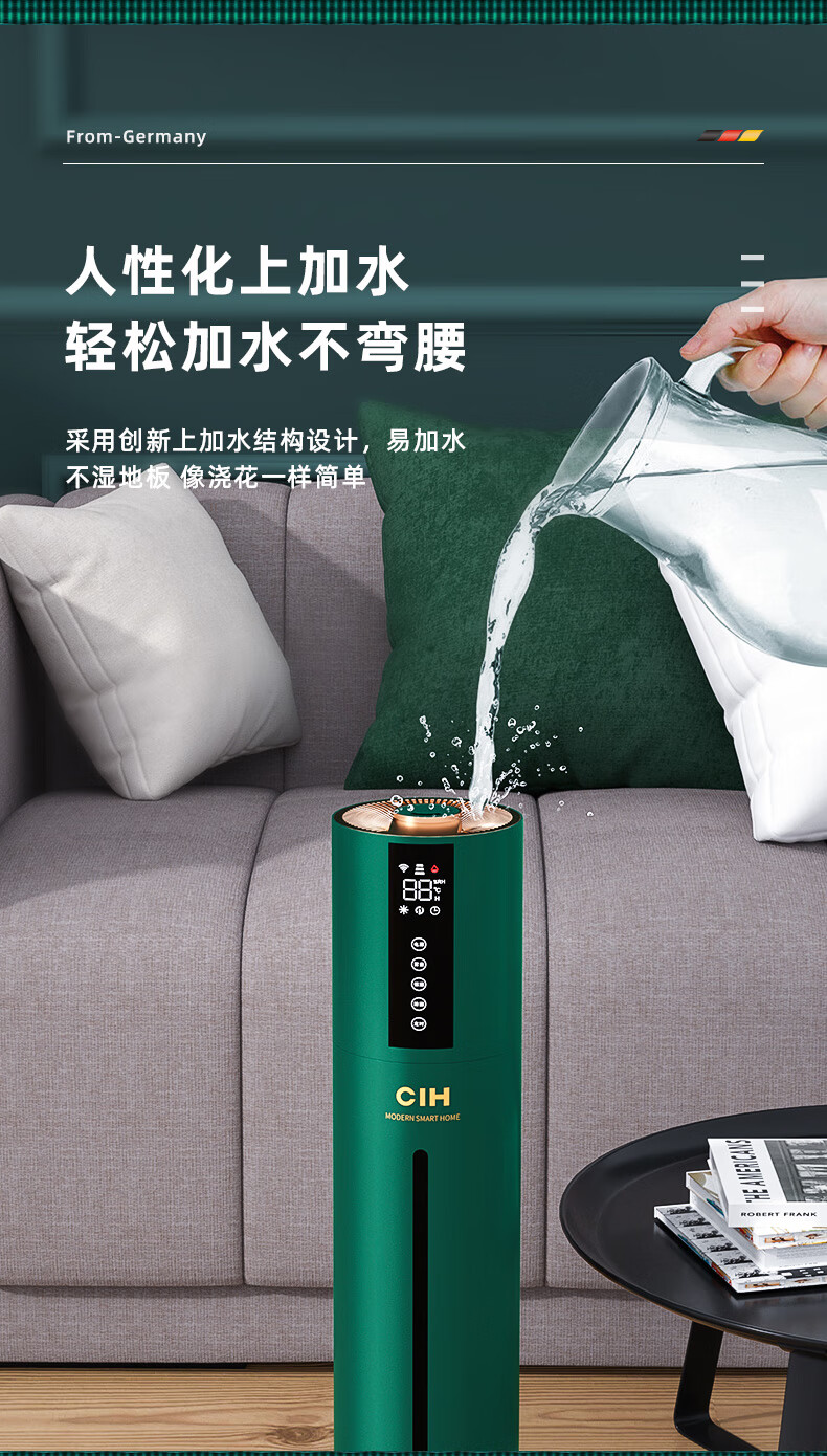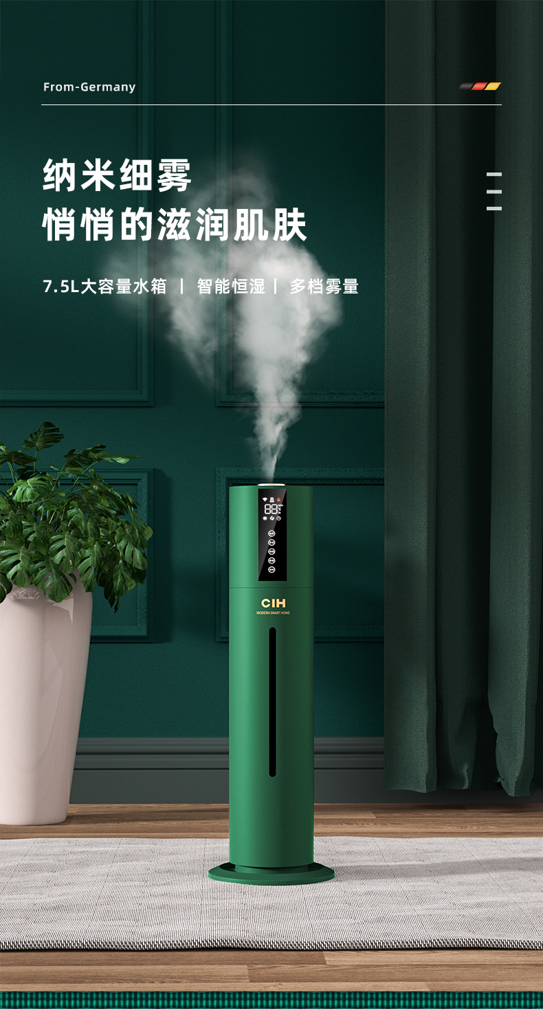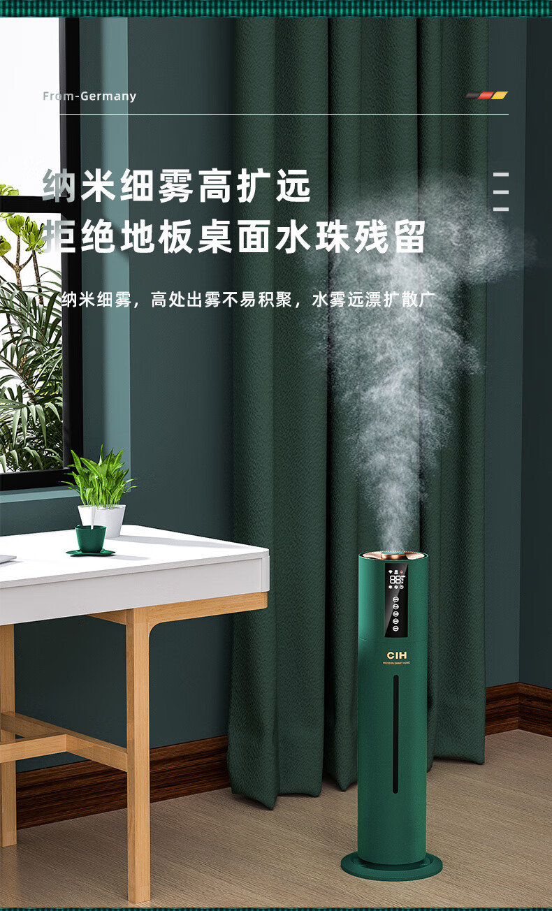 【小家电】CIH加湿器卧室落地家用孕妇婴儿UV空气加湿器大雾量办公室智能恒湿12小时定时 复古绿 7.5L上加水HF