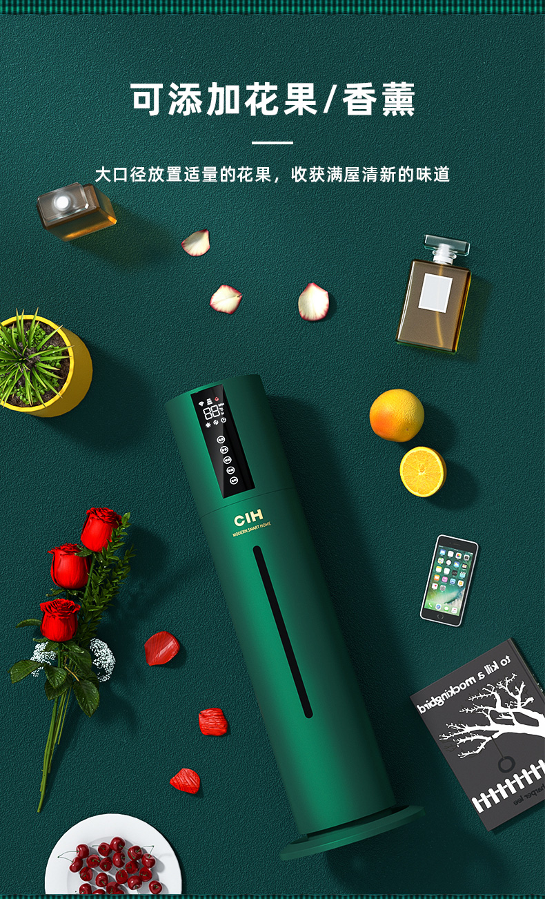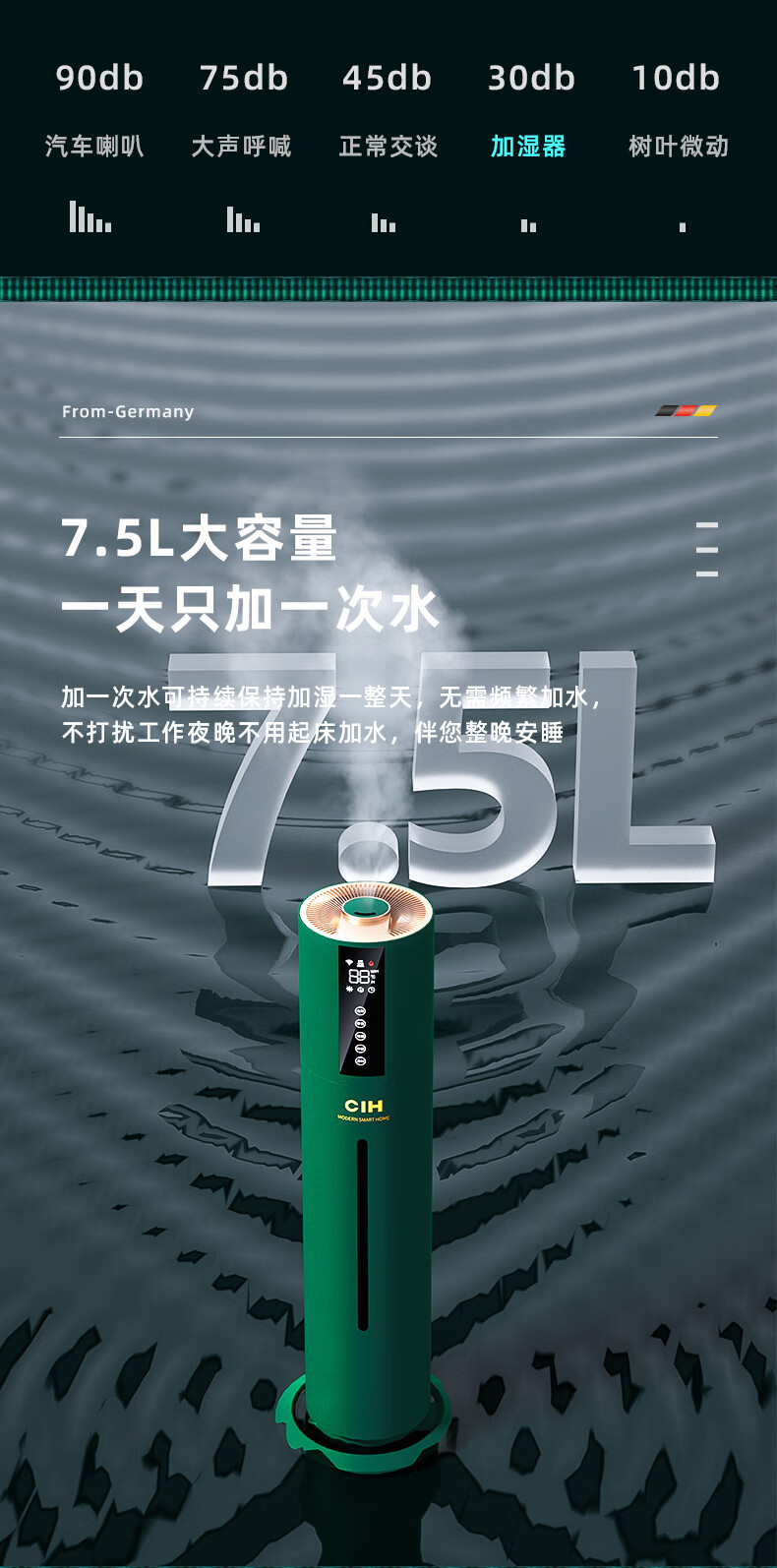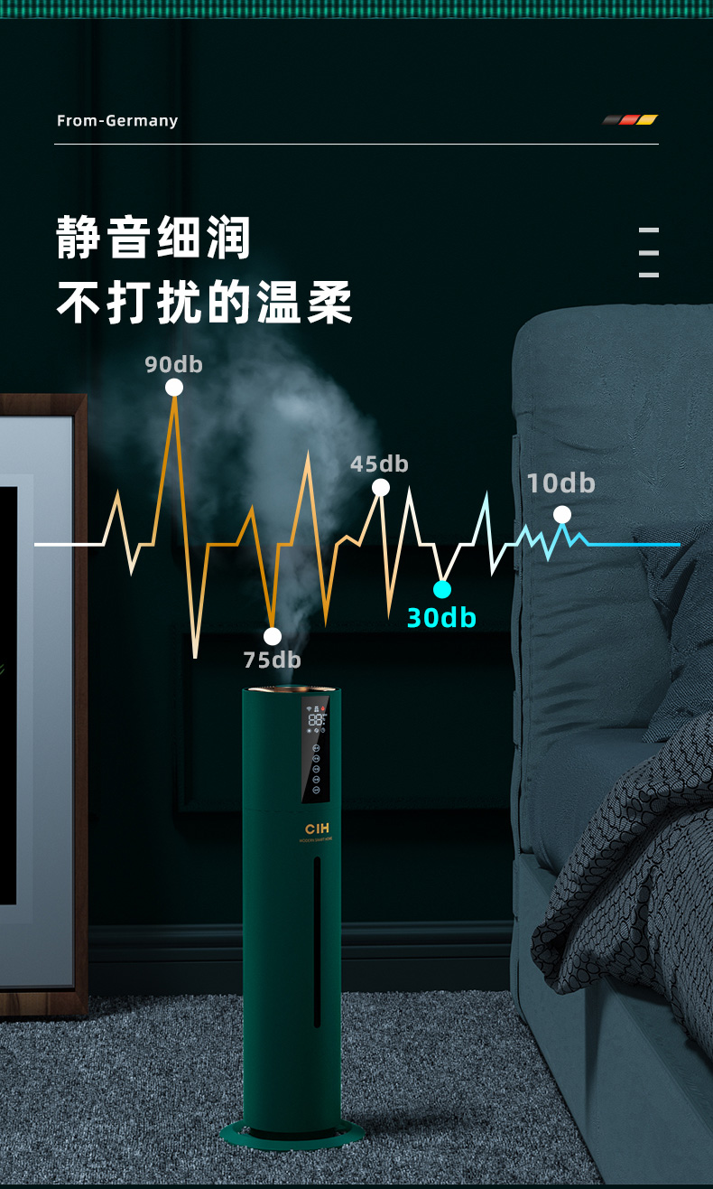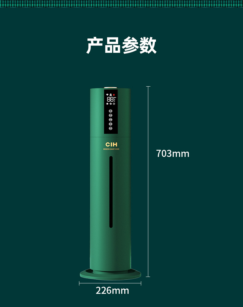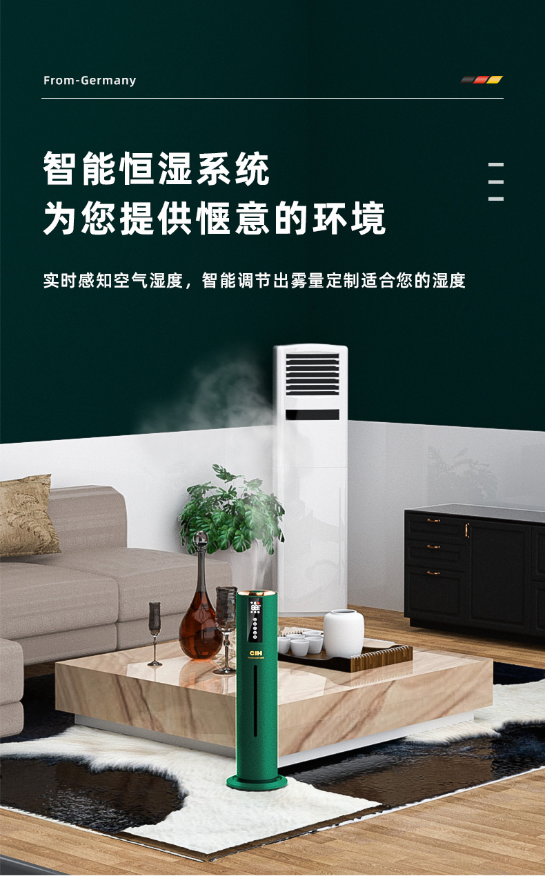 【小家电】CIH加湿器卧室落地家用孕妇婴儿UV空气加湿器大雾量办公室智能恒湿12小时定时 复古绿 7.5L上加水HF