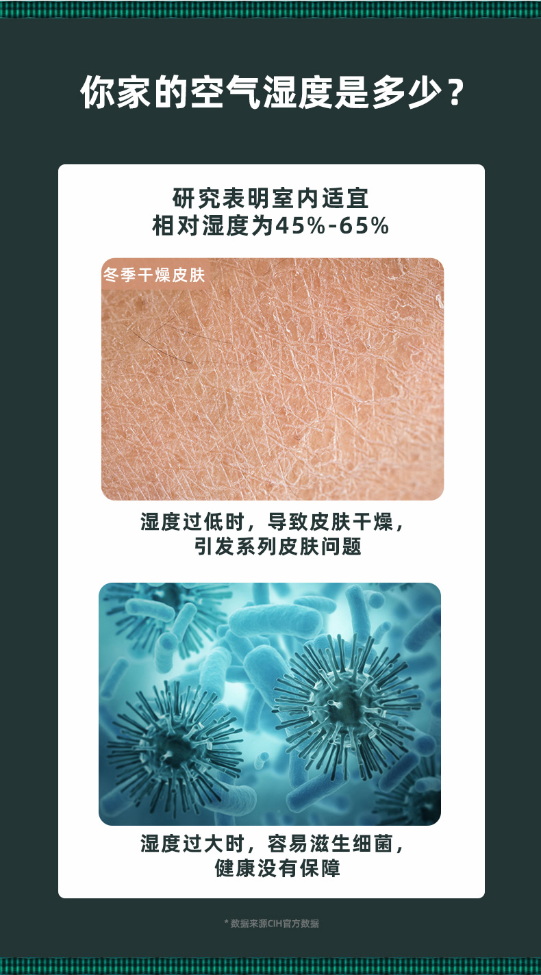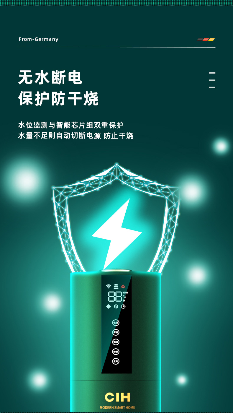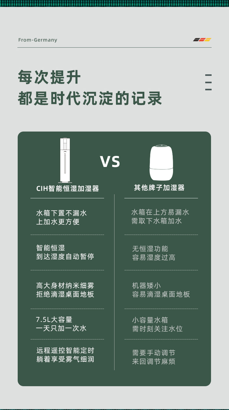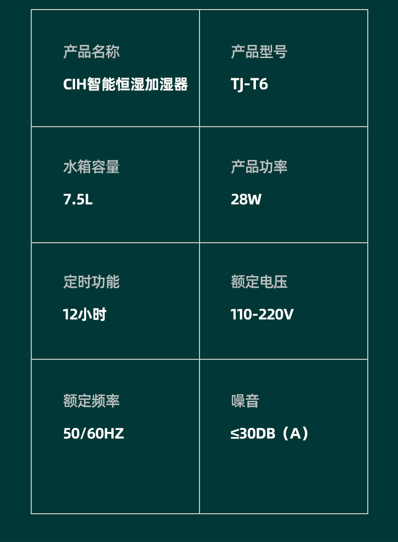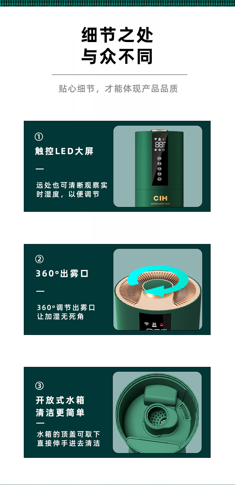 【小家电】CIH加湿器卧室落地家用孕妇婴儿UV空气加湿器大雾量办公室智能恒湿12小时定时 复古绿 7.5L上加水HF