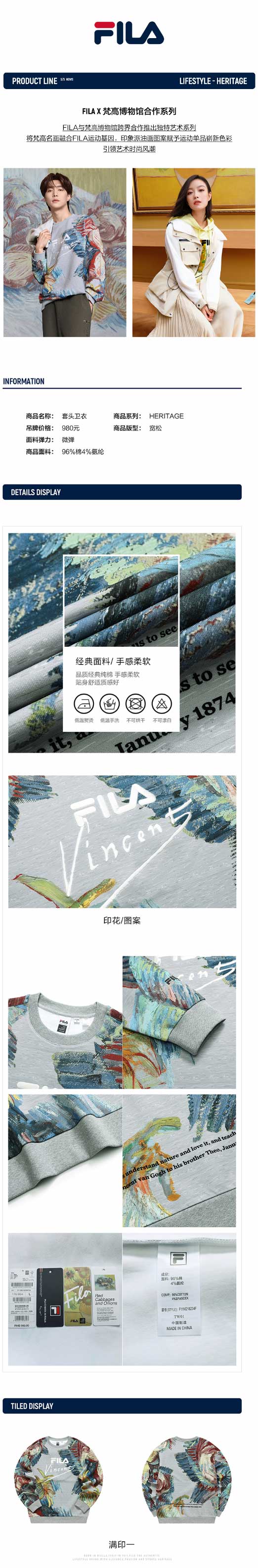 FILA【张艺兴同款】同款情侣卫衣2022春季新款F11M218234F