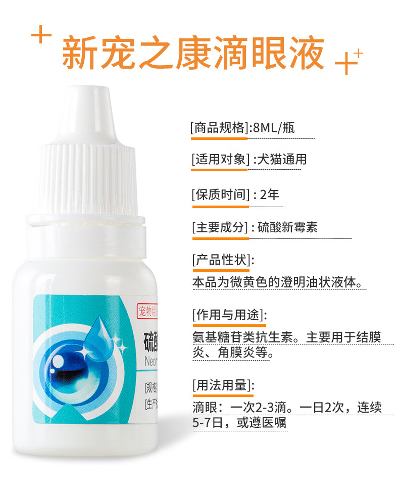 新宠之康亮洁宠物滴眼液猫咪狗狗红肿结膜角膜消炎洁眼液8ml