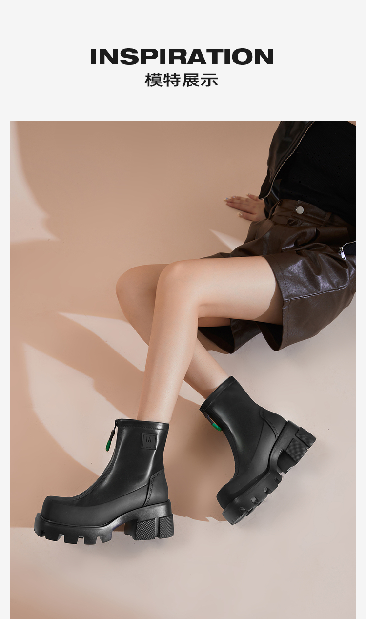 MIO米奥冬季方头高跟短筒靴运动机能靴厚底切尔西靴女M235630213
