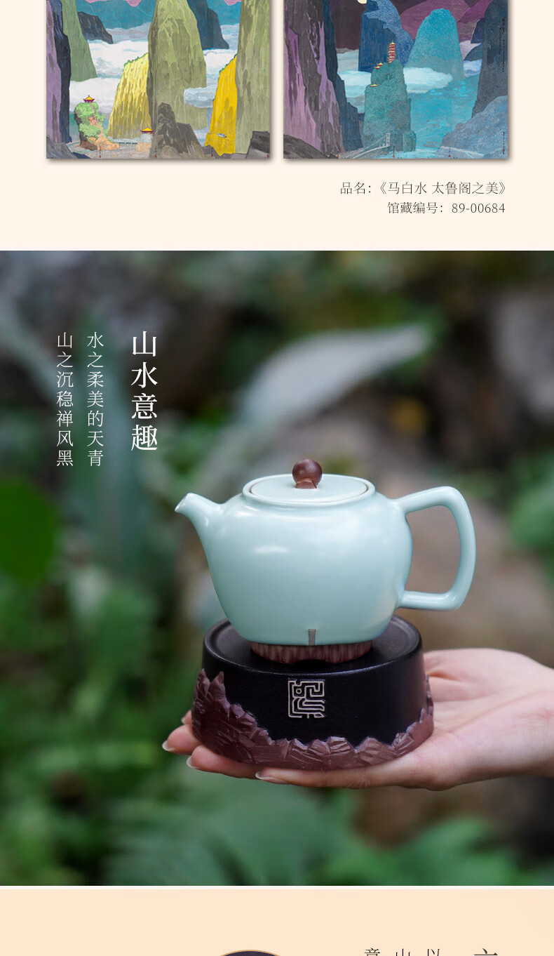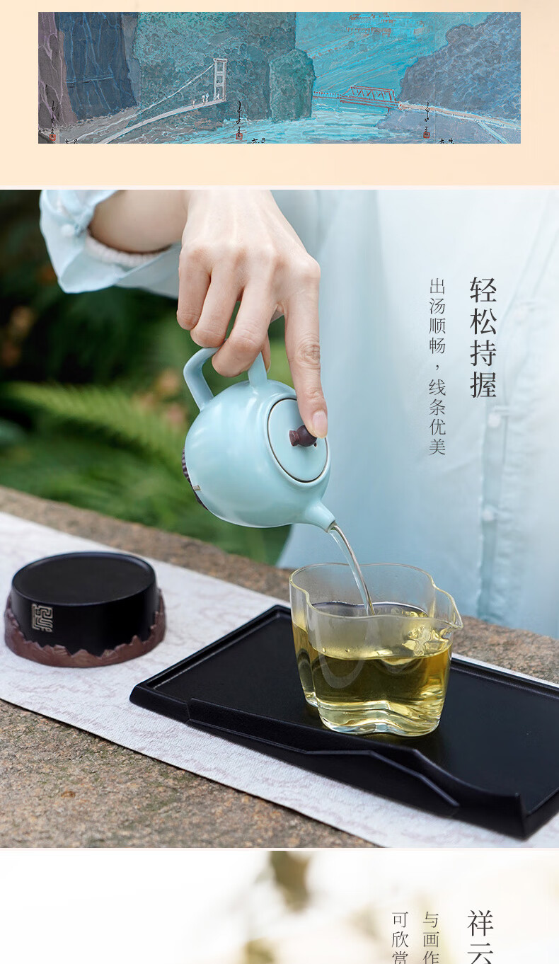 【样品特惠4.5折,仅1套无原包装,无货退款】陆宝泡茶套装带茶盘家用茶具陶瓷功夫礼品玻璃杯太鲁阁之美博物馆藏品 天青色茶礼(礼盒装) 10头