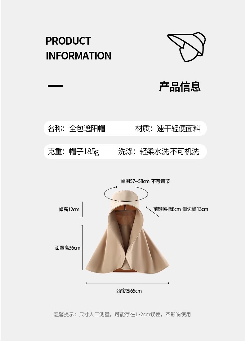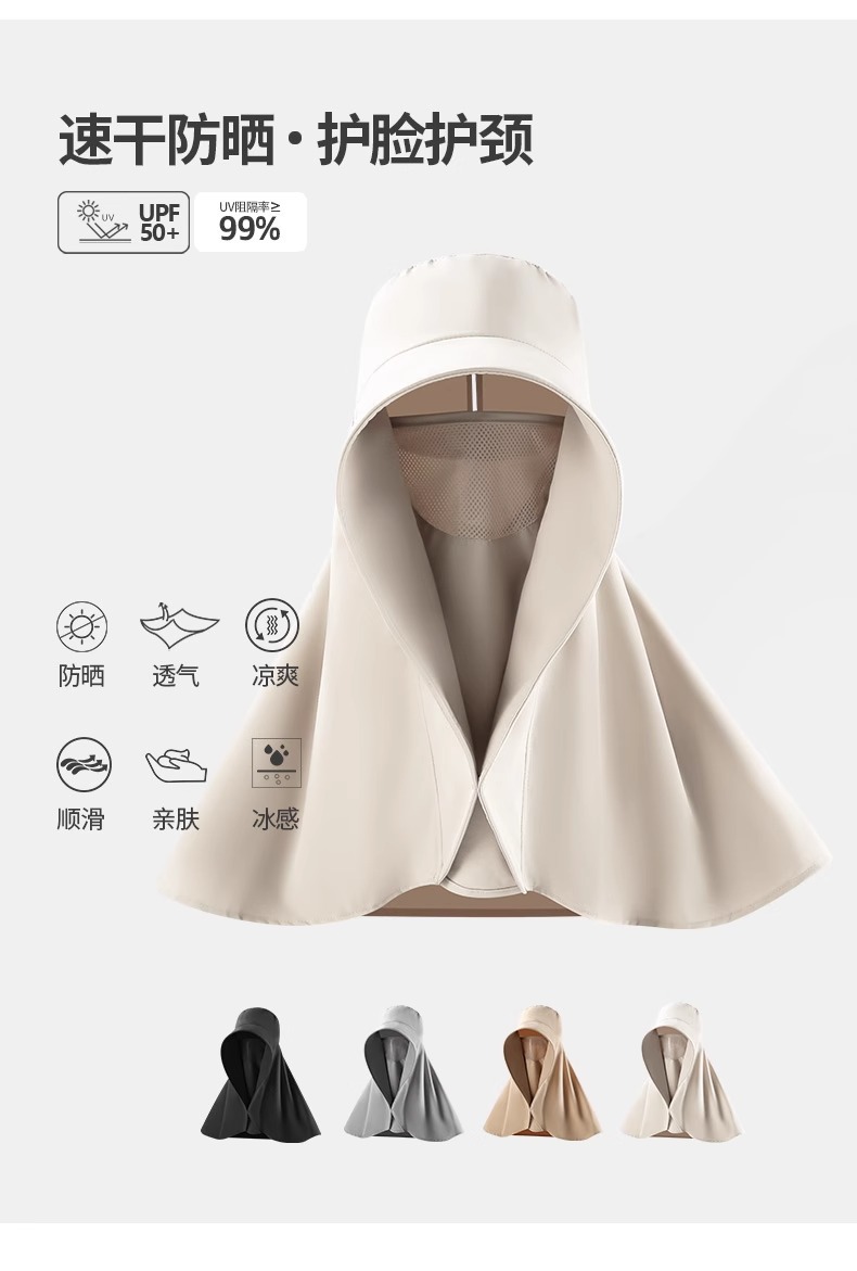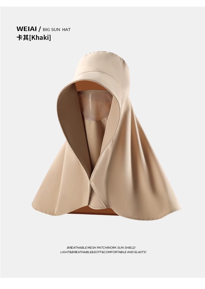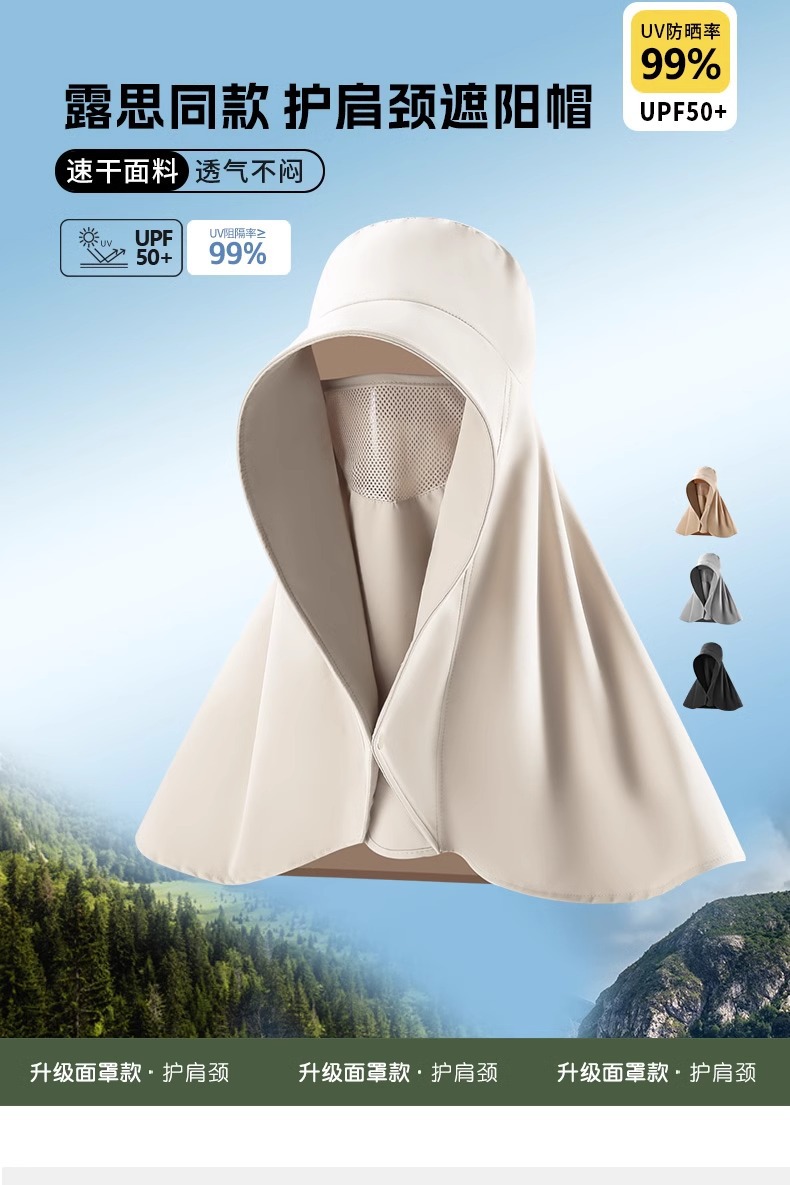 赵露思同款全脸防晒遮阳帽大帽檐面罩护颈一体披肩夏季速干太阳帽