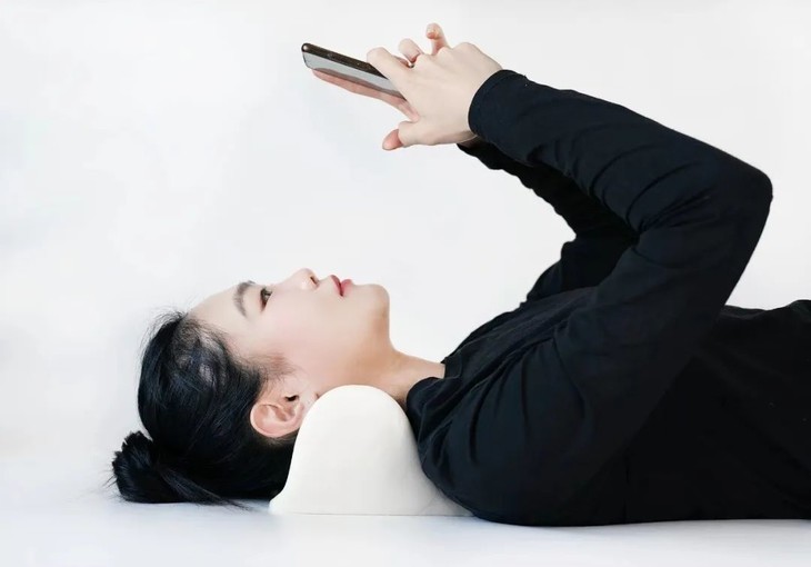 颈椎小熨斗特意将枕型设计成颈椎正常曲度,在躺下去的瞬间把颈椎和两侧斜方肌包裹住,躺着就可以进行颈椎的拉伸和牵引。