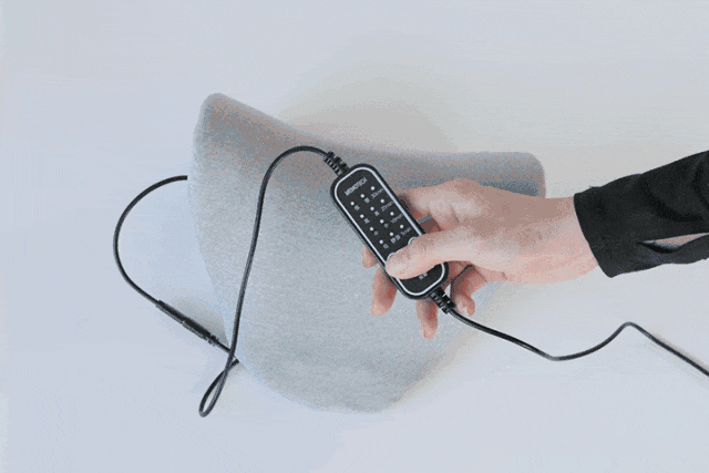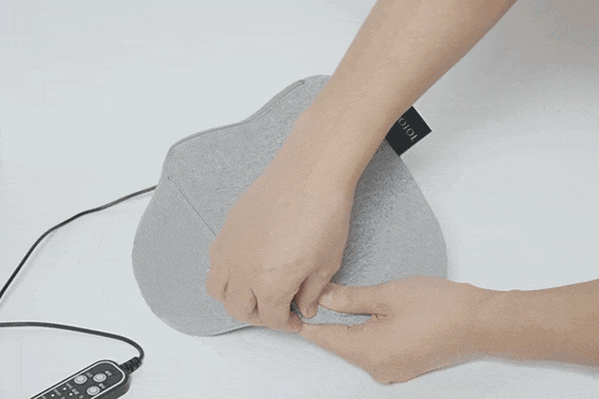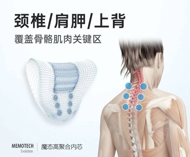 颈椎承托区设计有条状凸起,富贵包区域有六颗磁石,四分区各司其职,配合热敷和振动帮助颈椎放松。