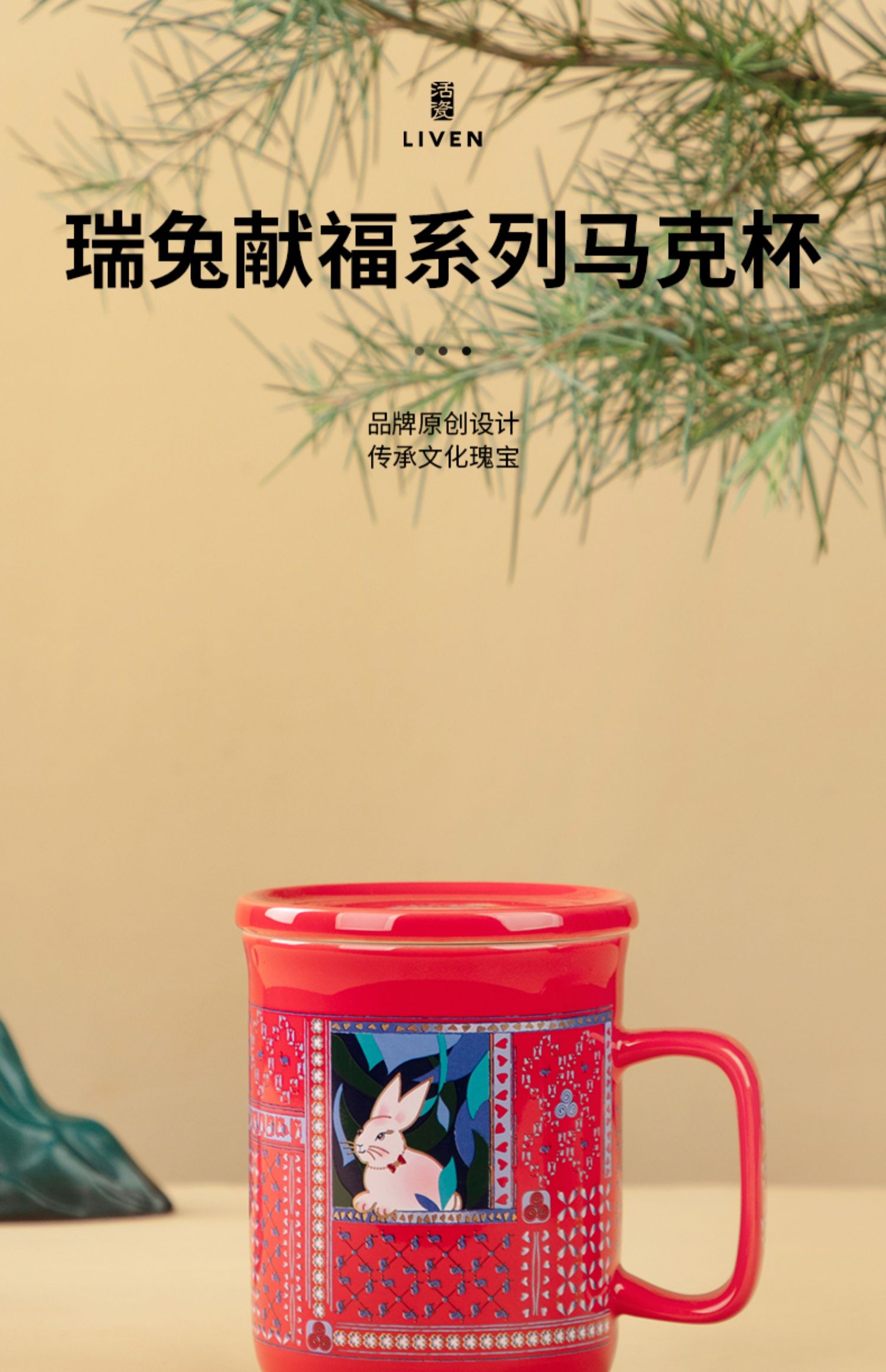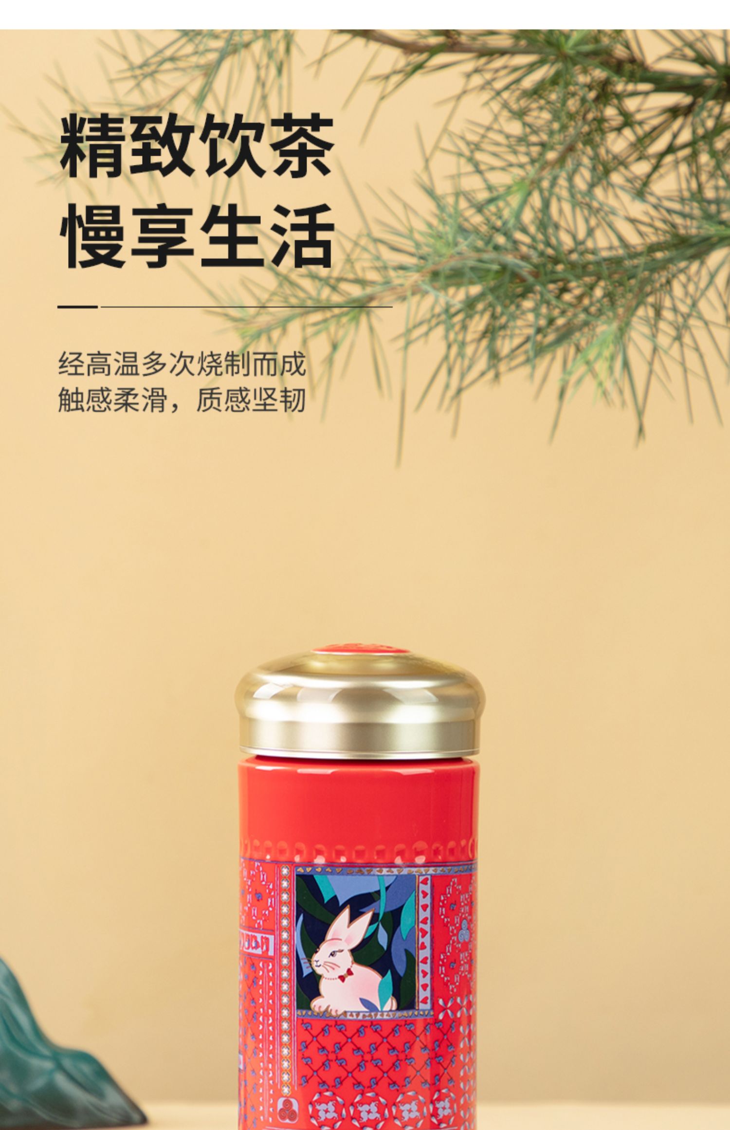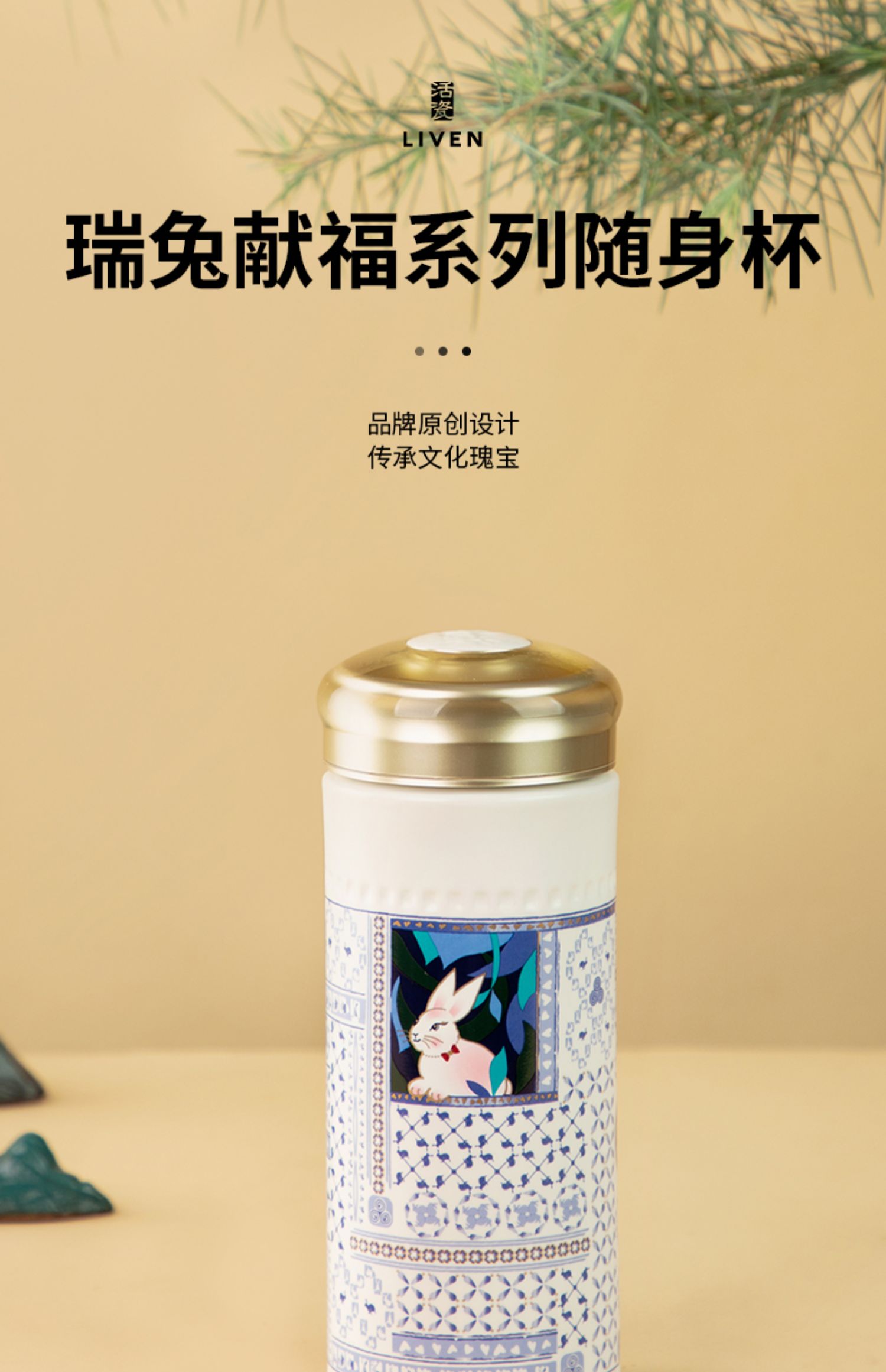 乾唐轩活瓷杯瑞兔献福系列陶瓷随身杯2023年新款王者之兔套装杯