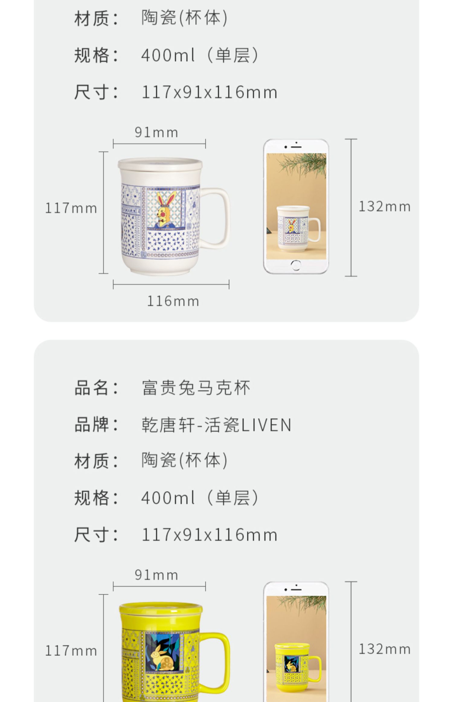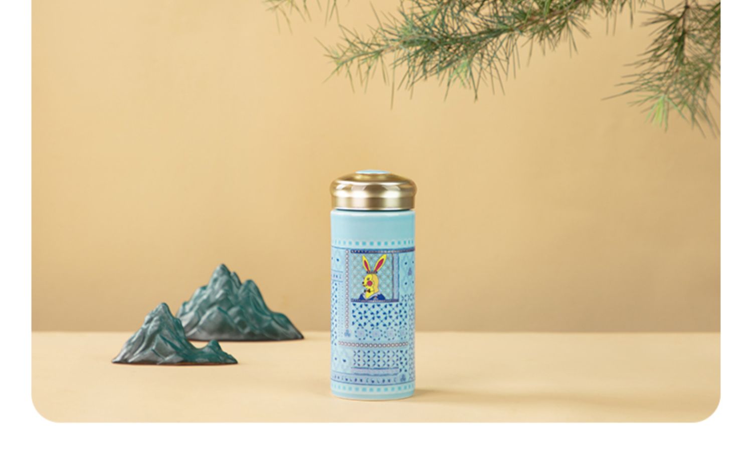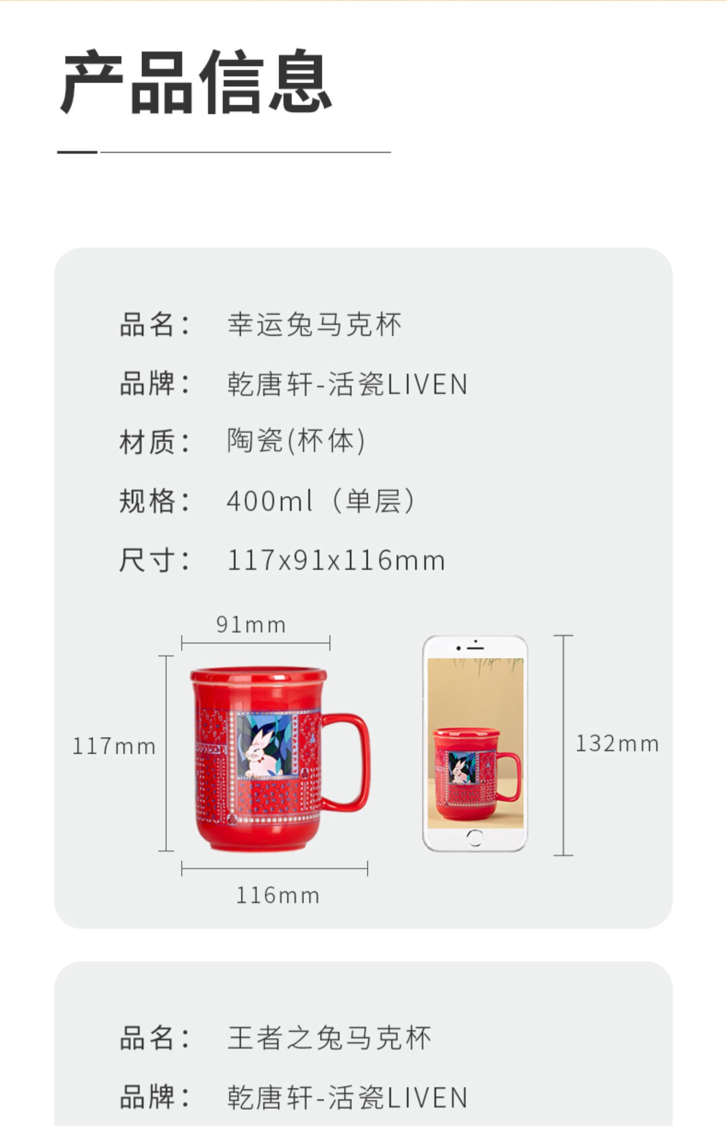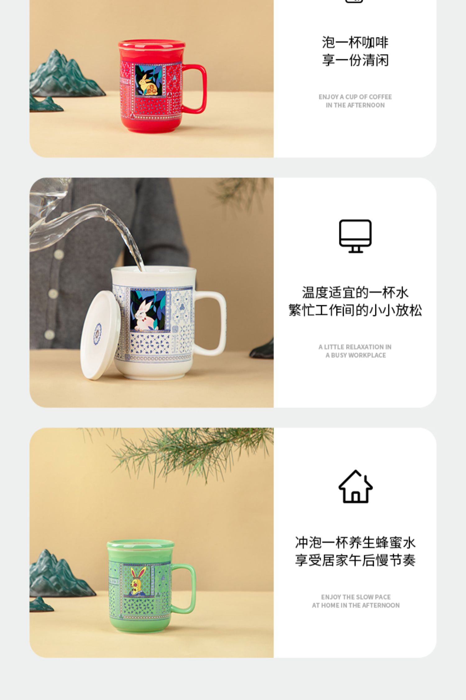 乾唐轩活瓷杯瑞兔献福系列陶瓷随身杯2023年新款王者之兔套装杯