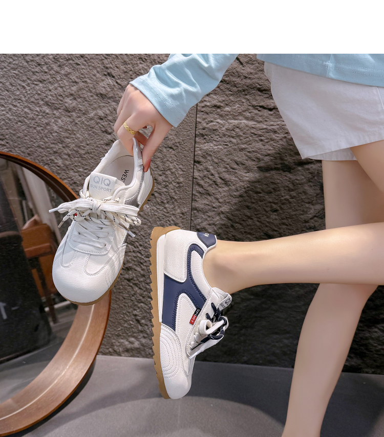 西遇超火德训鞋女2026新款春季系带厚底内增高通勤百搭休闲板鞋P0066300