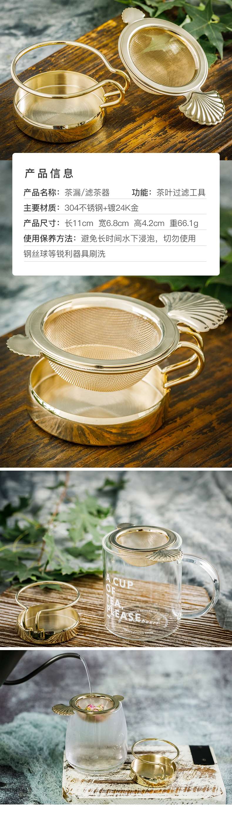 Chabiubiu镀24K真金茶叶过滤器不锈钢泡茶茶漏茶滤茶道茶具配件(赠品防拍)
