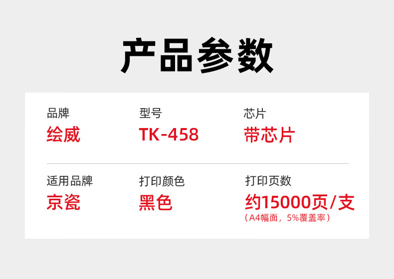 绘威TK-458粉盒 适用京瓷Kyocera TASKalfa 220 221打印机复印机墨盒 墨粉盒 碳粉盒 墨粉 碳粉