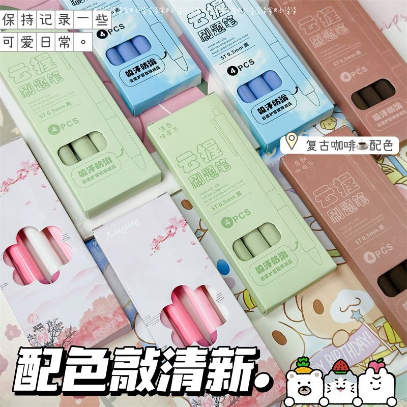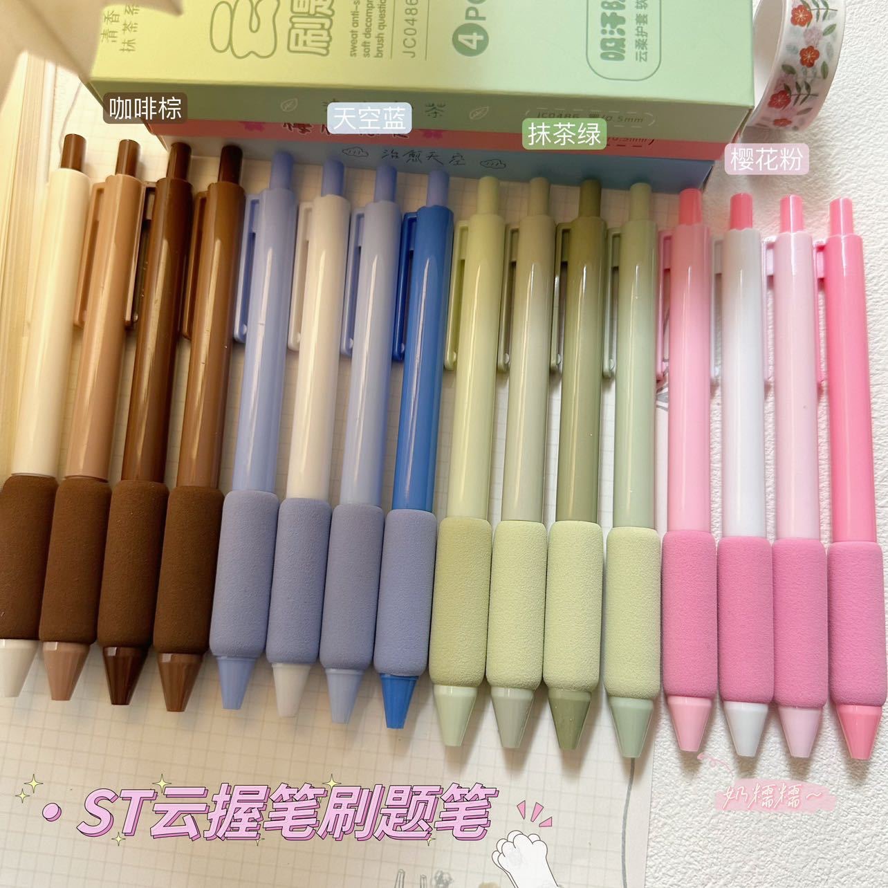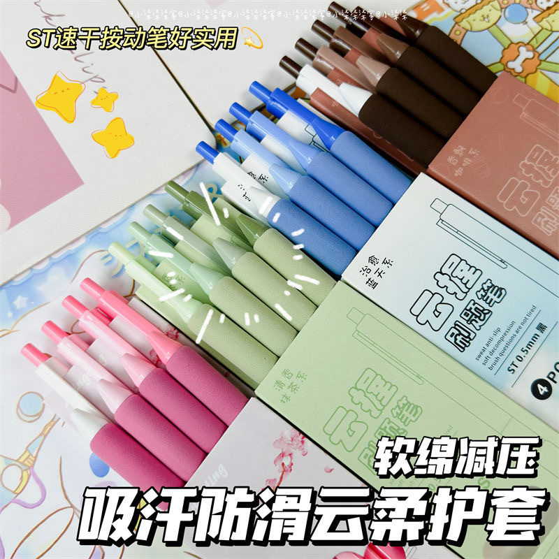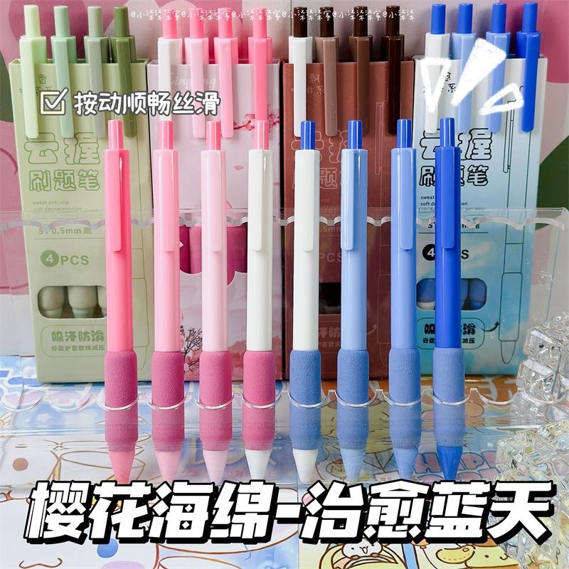 「9.9到手1盒4支!赠送10支笔芯」软护套按动笔 ins风潮流马卡龙色中性0.5mm水笔文具
