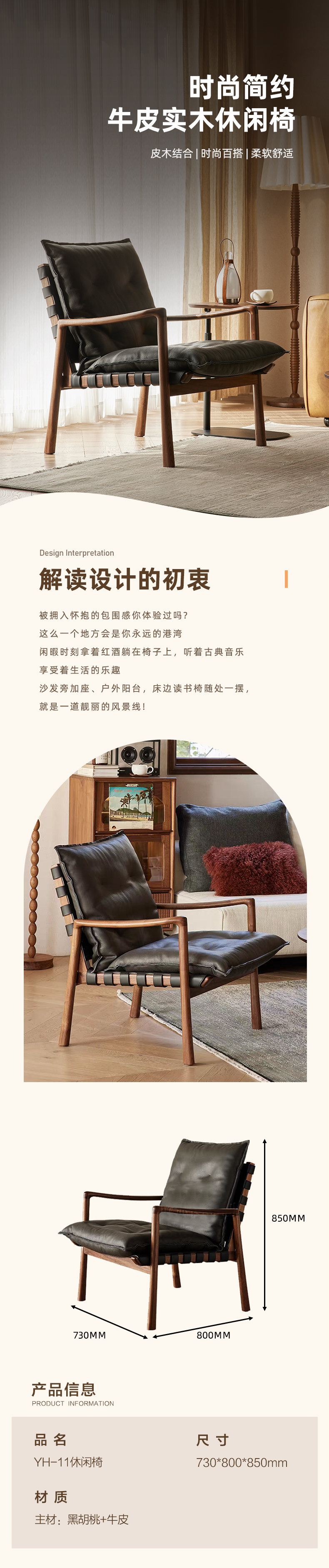 【中古风-YH-11椅】黑胡桃/真皮/客厅/卧房/休闲椅/休闲沙发