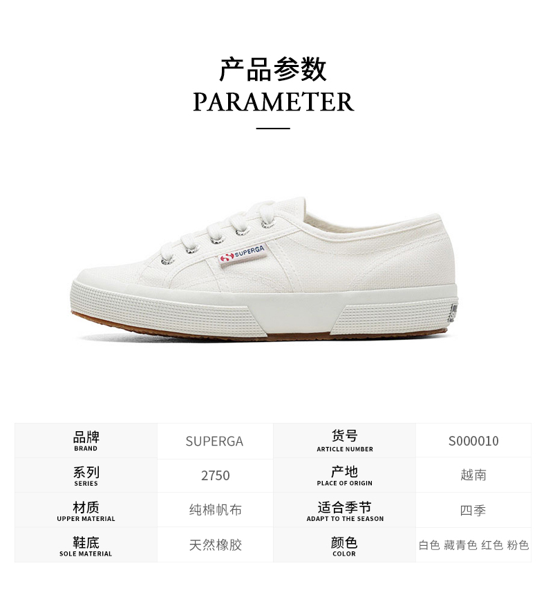 SUPERGA新款小白鞋女百搭休闲鞋 低帮透气经典男女帆布鞋 2750