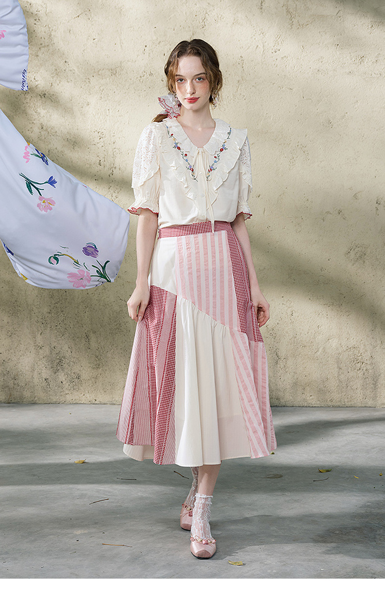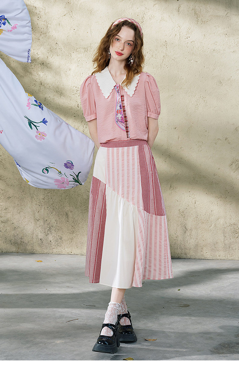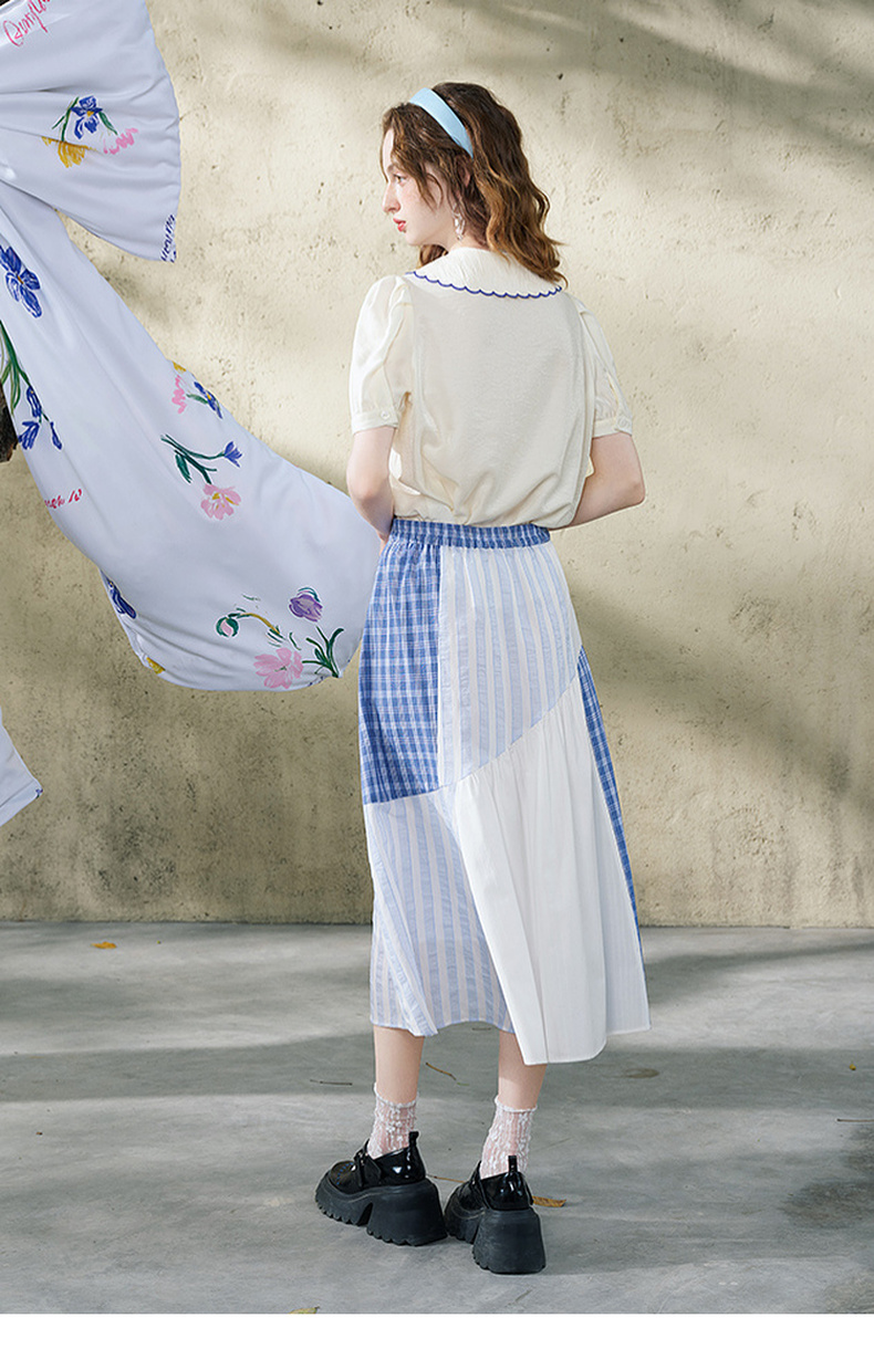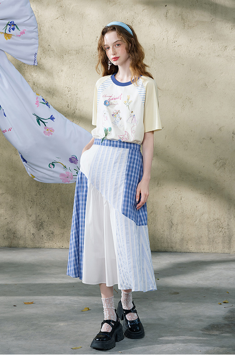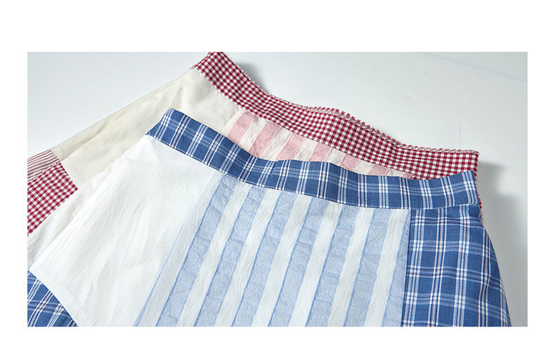 两三事 诗藤绮梦 2025夏季新款小清新格子条纹拼布a字半身裙长裙