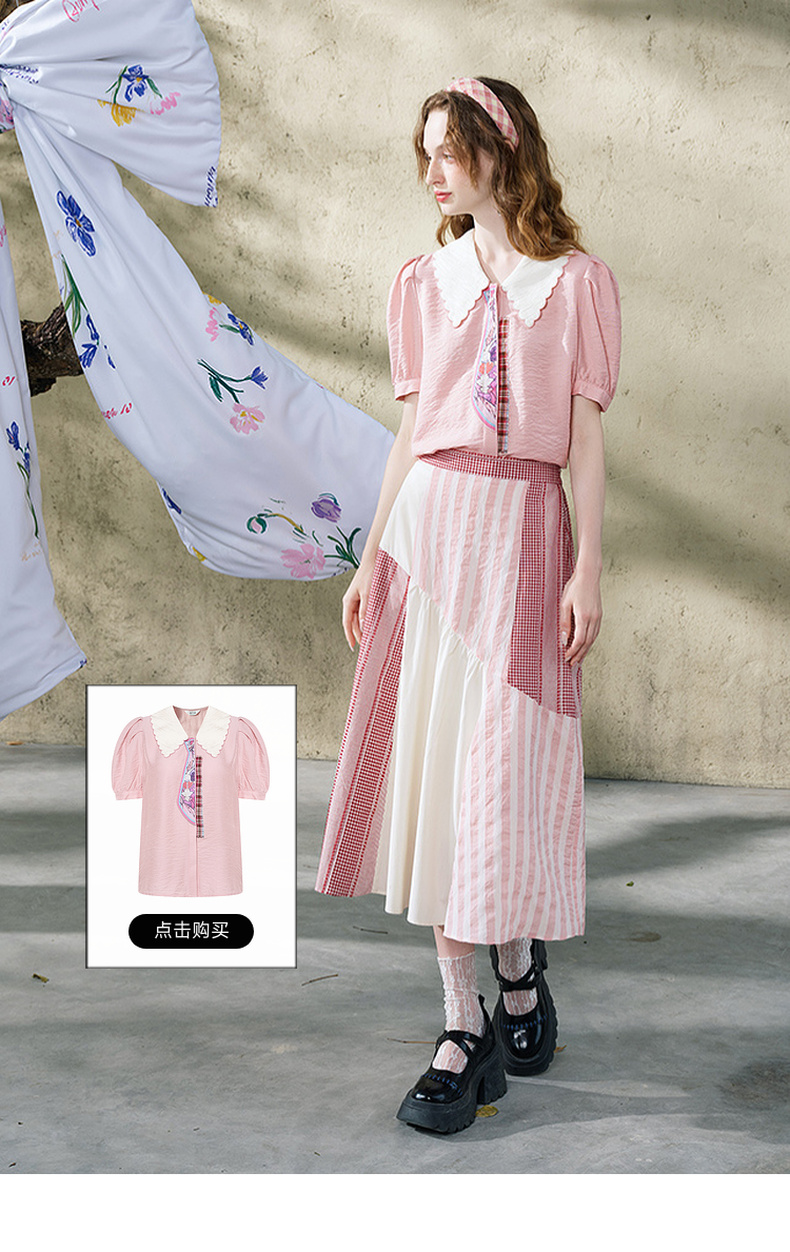 两三事 蜜夏神谕 2025春季新款文艺风蝴蝶结大翻领印花衬衫女宽松
