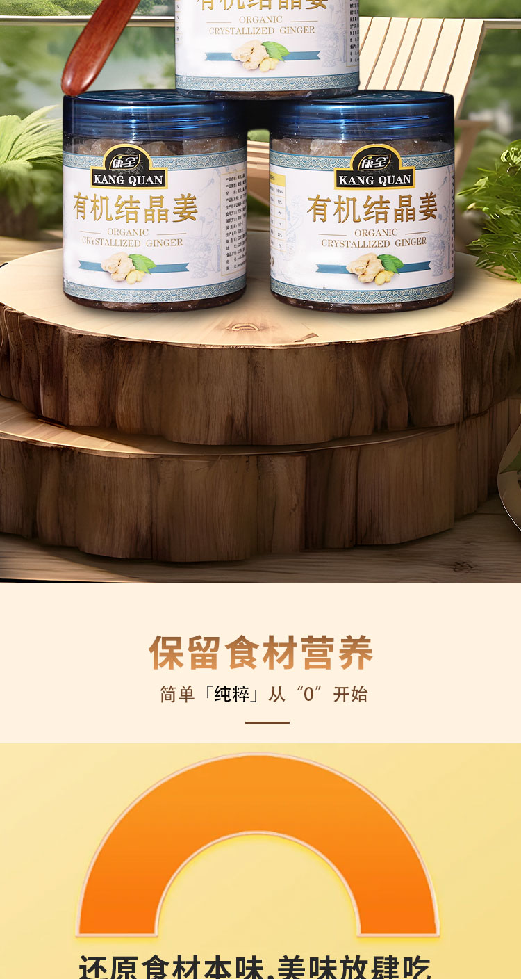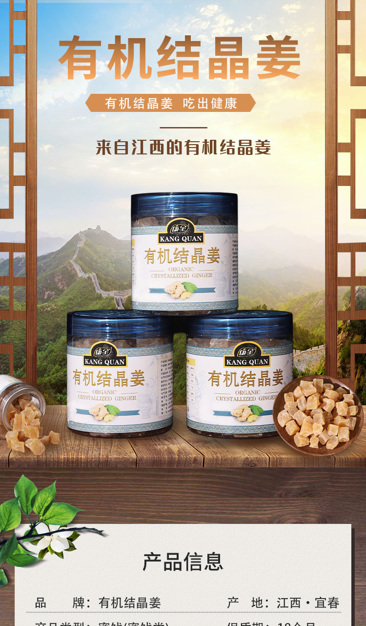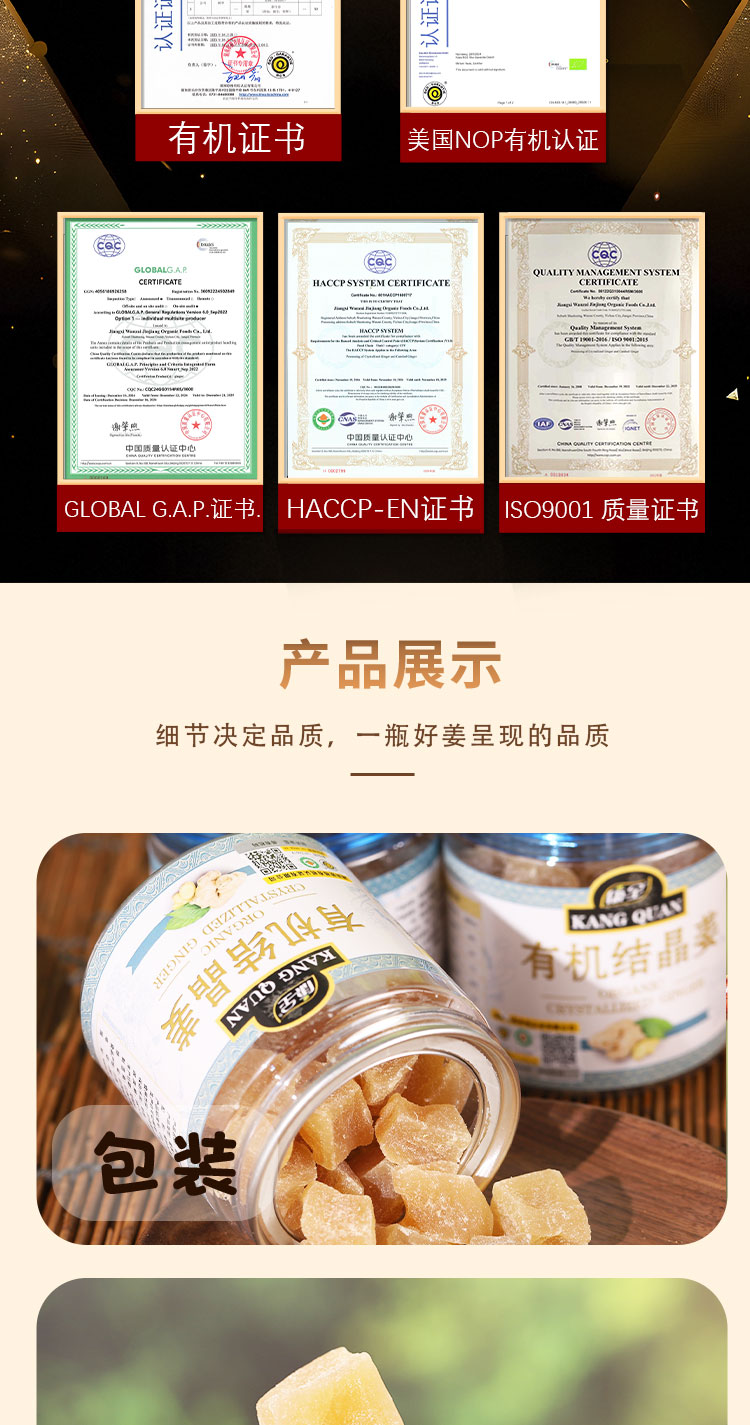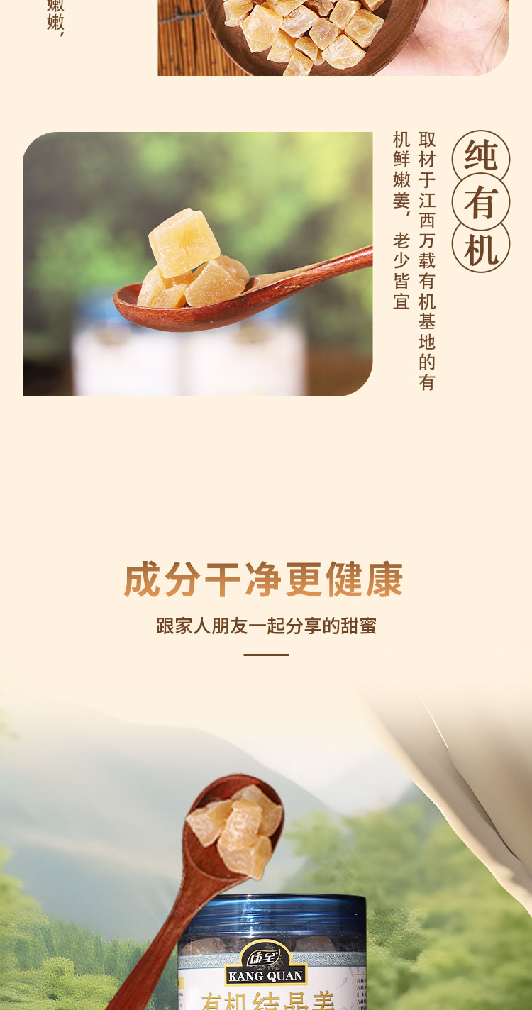 康全 有机结晶姜 180g罐装 结晶姜糖条生姜糖果蜜饯零食