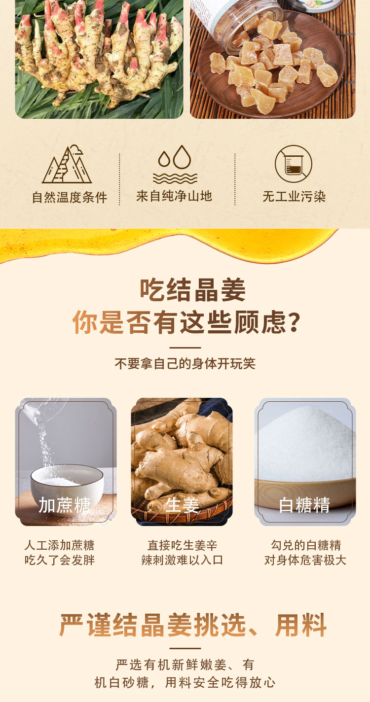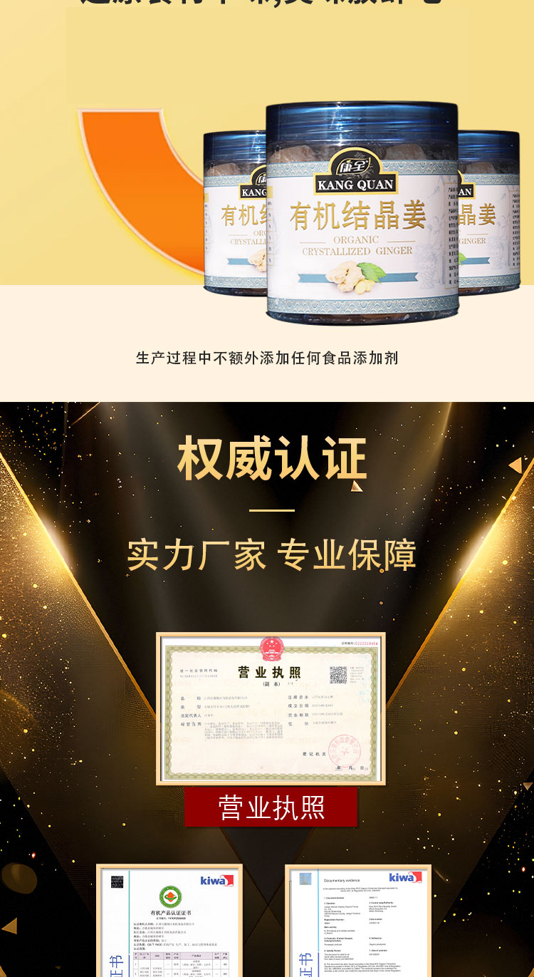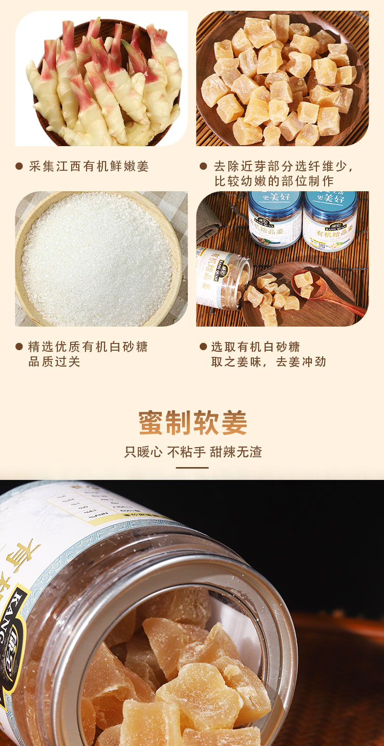 康全 有机结晶姜 180g罐装 结晶姜糖条生姜糖果蜜饯零食